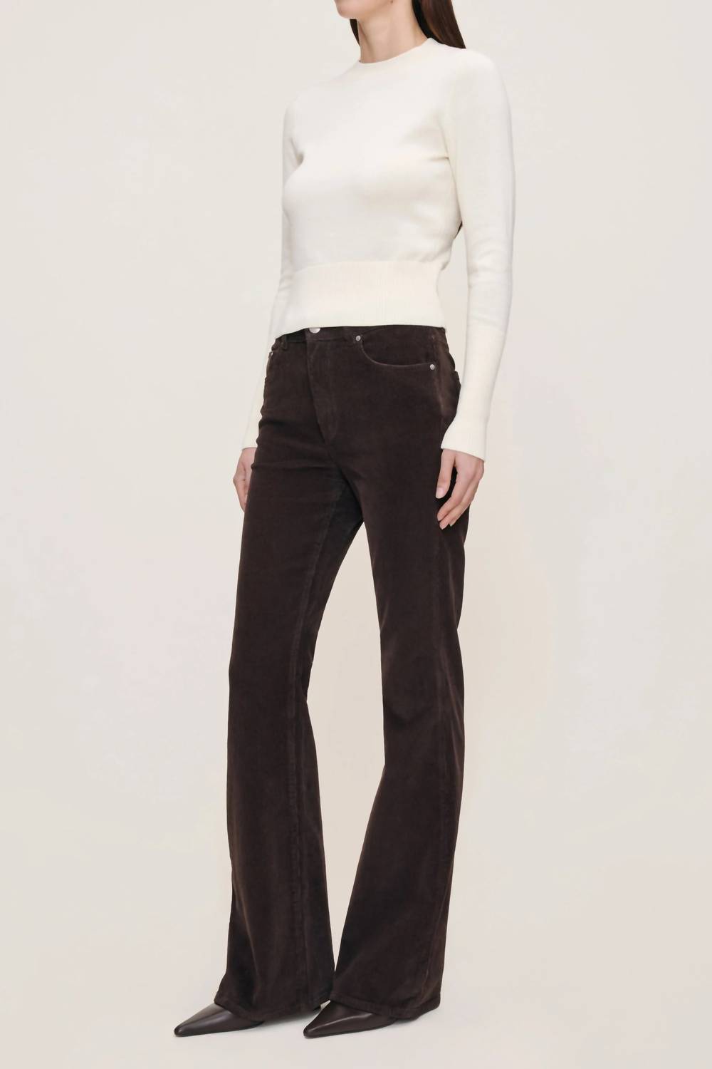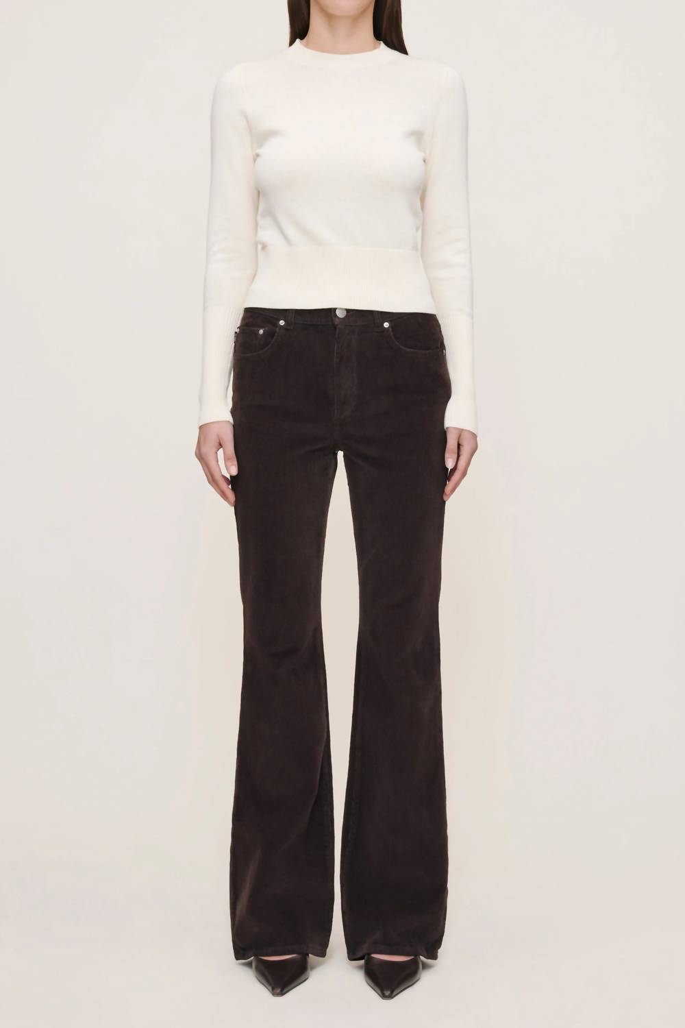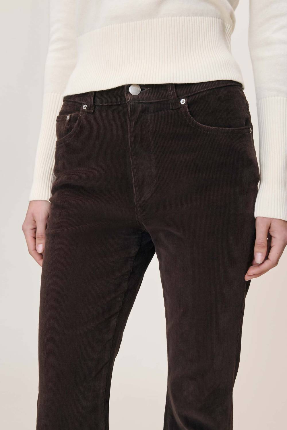 Just add boots! Introducing the DL1961 Women's Bridget Boot High Rise Instasculpt™ Jeans in the striking Meteorite hue, perfect for a vintage-inspired look this Thanksgiving. These women’s relaxed fit jeans feature a high rise with a 10" rise, a 33" inseam, and a 17" leg opening, crafted from a luxurious 98% cotton and 2% lycra blend for comfort and style. The rich brown textured corduroy material is complemented by tonal stitching, clean hems, and silver hardware, all secured with a button closure. Easy to maintain, simply machine wash for long-lasting wear.