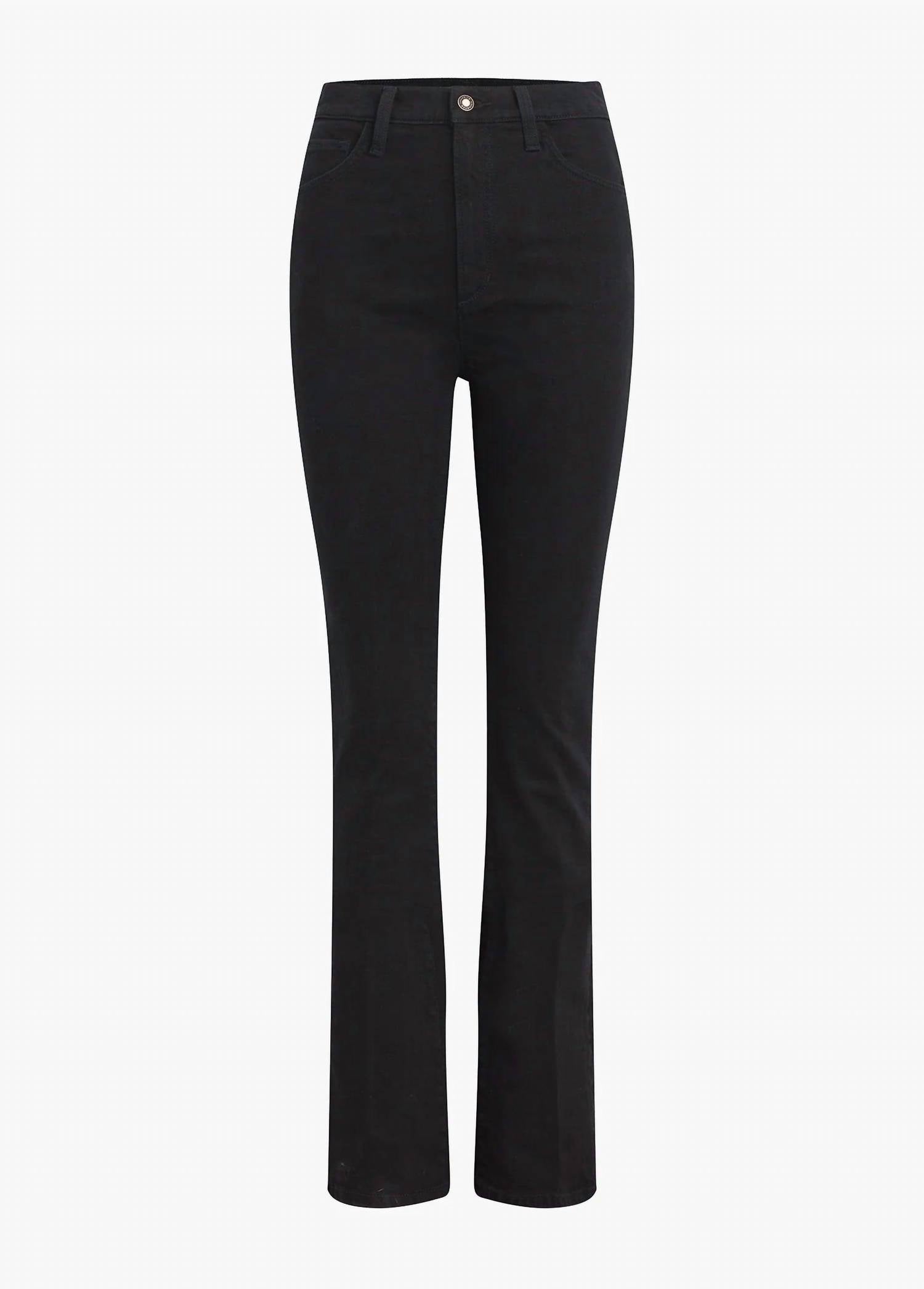 A boot-cut jean that not only looks good on, you'll be comfortable in them all day. The Valentina Super High Rise Mini Bootcut Jeans by Favorite Daughter offer a sophisticated silhouette with their extreme high rise and black Kyoto wash. Crafted from a blend of 98% cotton and 2% elastane, these jeans feature a button closure and are designed for a regular fit with a slim mini bootcut leg. The jeans present a flattering 11.5" rise, a 34" inseam, a 14.25" knee width, and a 16.5" leg opening, making them ideal for a variety of occasions. For easy care, machine wash cold and tumble dry.