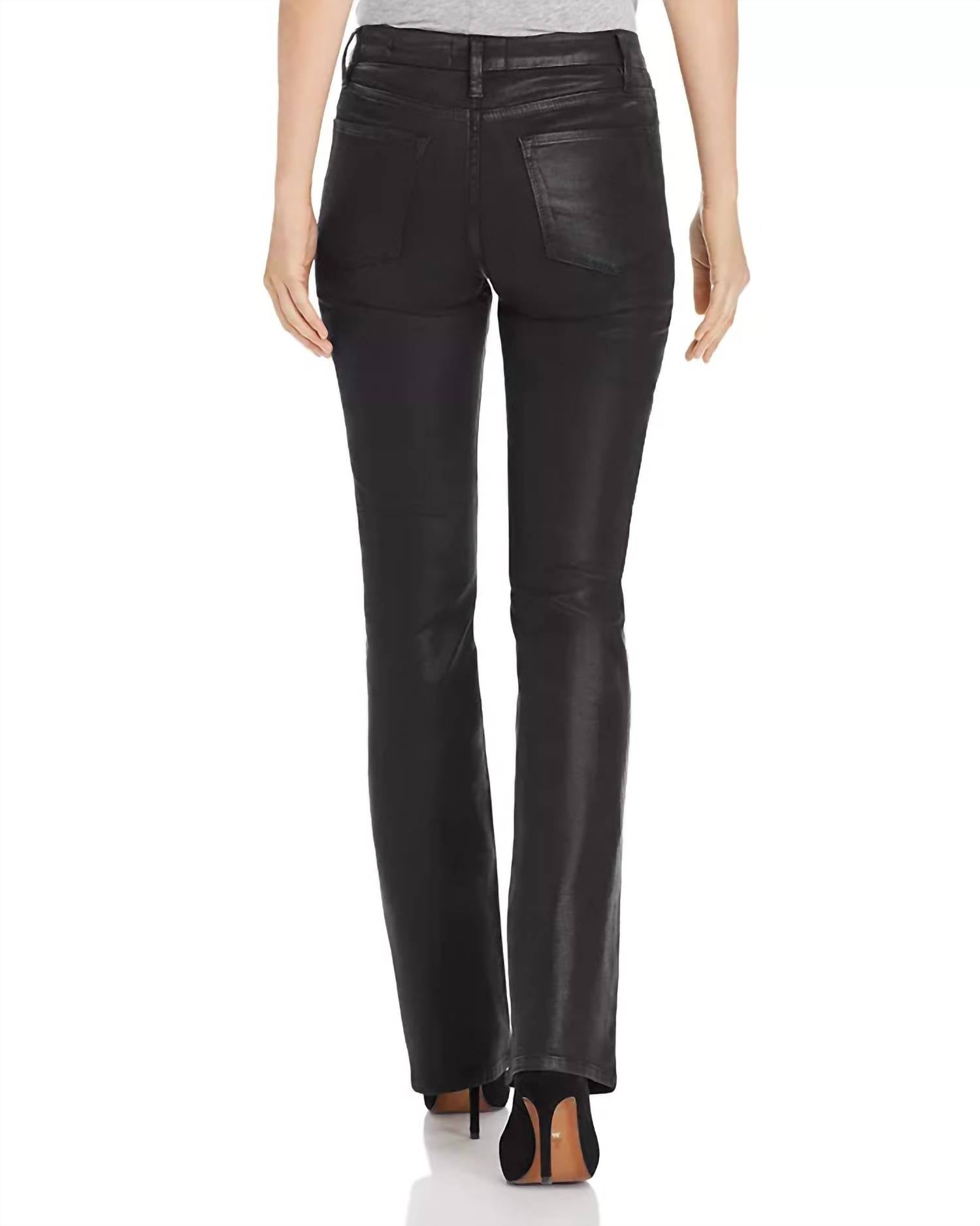 If you're looking for boot-cut, this is the jean for you. Discover the sophisticated Le Mini Boot Jeans by FRAME in a chic Noir finish, perfect for your evening events. Crafted from 98% cotton and 2% elastane, these jeans feature a high-rise waist of 9.75 inches with a long 33-inch inseam for an effortlessly elongating fit. Made in Turkey, they boast a stylish bootcut leg with tonal stitching and gold-tone logo hardware. The zip fly with button closure and five-pocket silhouette ensure both function and flair, and they are recommended for dry cleaning. Model is 5'10" with a 33.5" bust, 23.5" waist, 34.5" hips, and wears a size 27.
