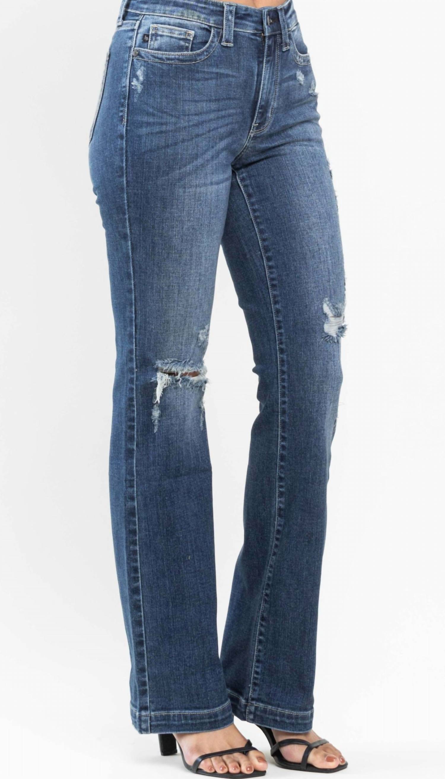 If you're looking for boot-cut, this is the jean for you. Elevate your style with the Judy Blue Mid Rise Bootcut Jeans in blue, a perfect fit for the fashion-forward individual. Crafted from high-quality denim, these jeans boast a comfortable regular fit with a flattering mid-rise waist of 9.75 inches and a classic bootcut leg. Enhanced by a medium wash for a timeless appearance, they feature a reliable button closure and practical pockets. Care is simple with machine wash instructions, making them an easy addition to your wardrobe.