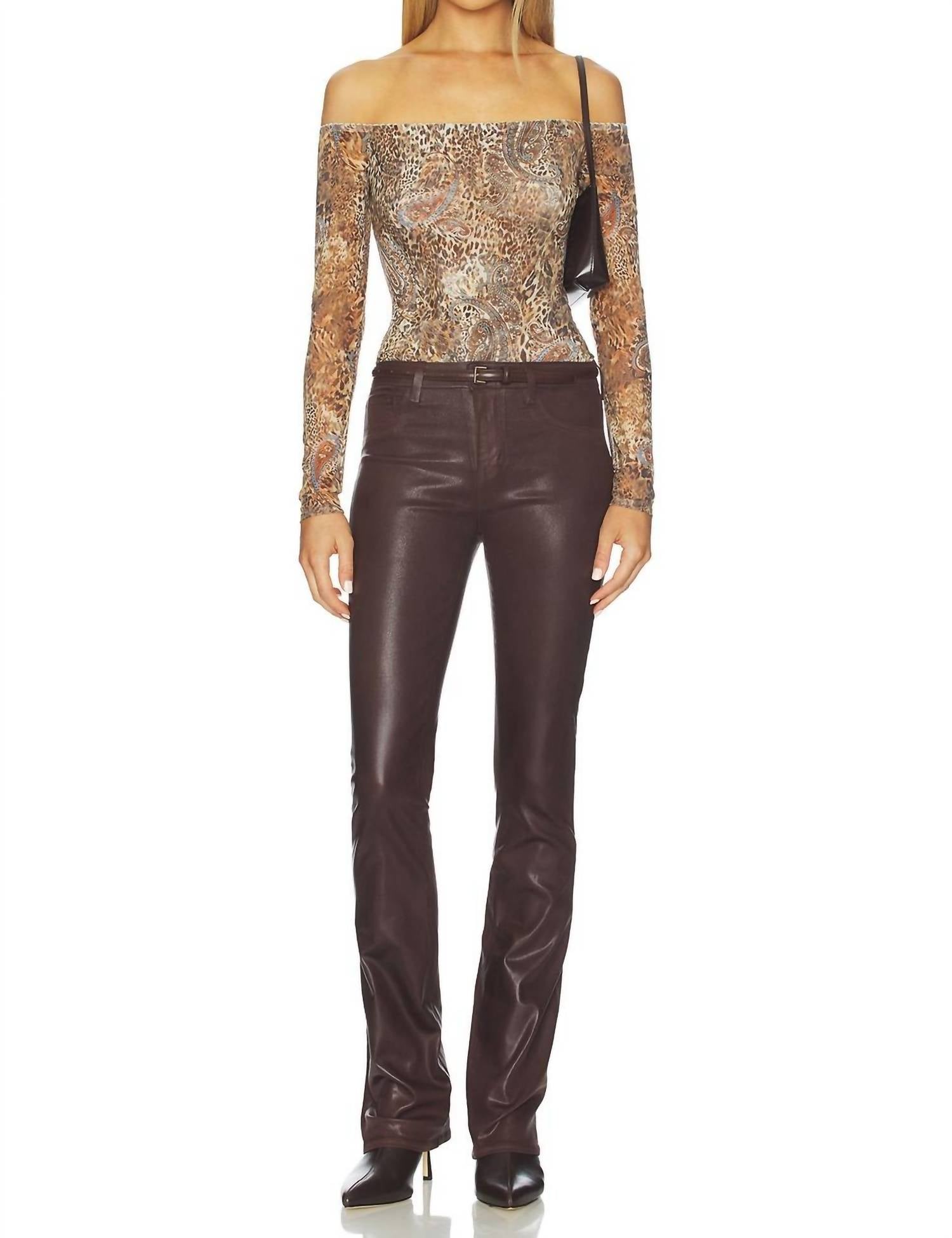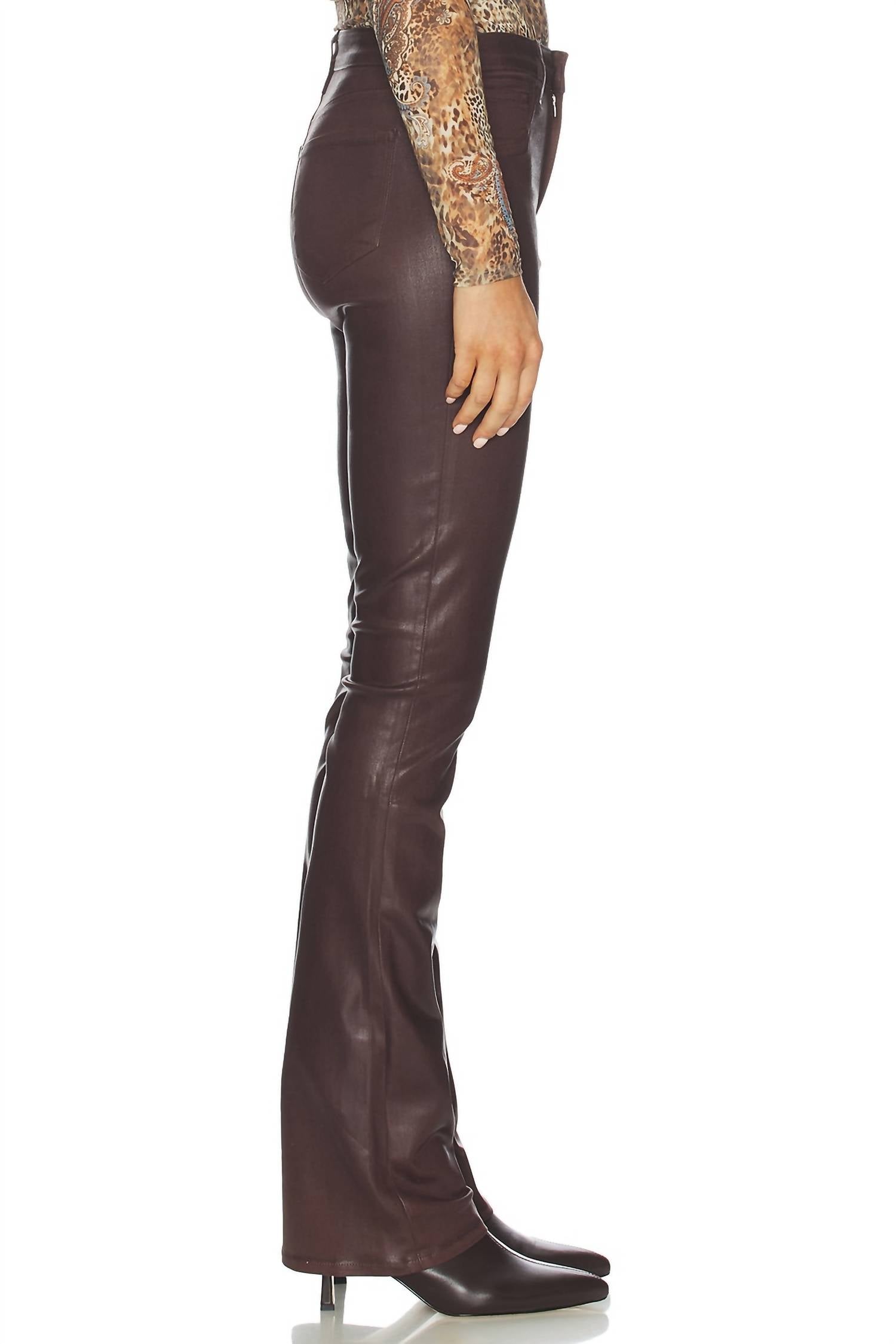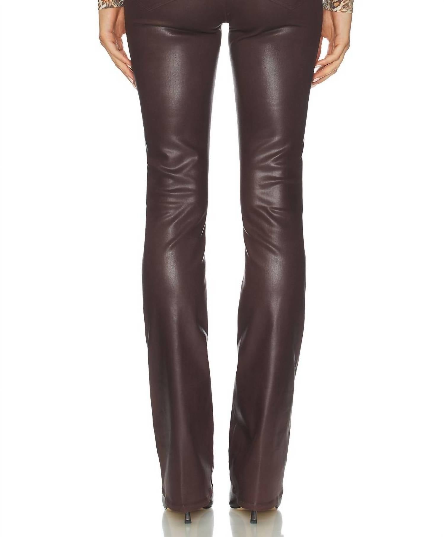 If you're looking for boot-cut, this is the jean for you. Step into the season with the L'Agence Selma Baby Bootcut Jeans in a striking chocolate coated finish. Crafted in the USA, these jeans boast a high rise of 10.0 inches with a regular fit and straight leg for a flattering silhouette. Made from a blend of 86% cotton, 11% elastane, and 3% spandex, they feature a versatile zipper and button closure and practical slip pockets at the back. Leg openings are a comfortable 41 cm, and while they are a breeze to style for travel or New Year's Eve, they should be professionally spot cleaned and disinfected only.