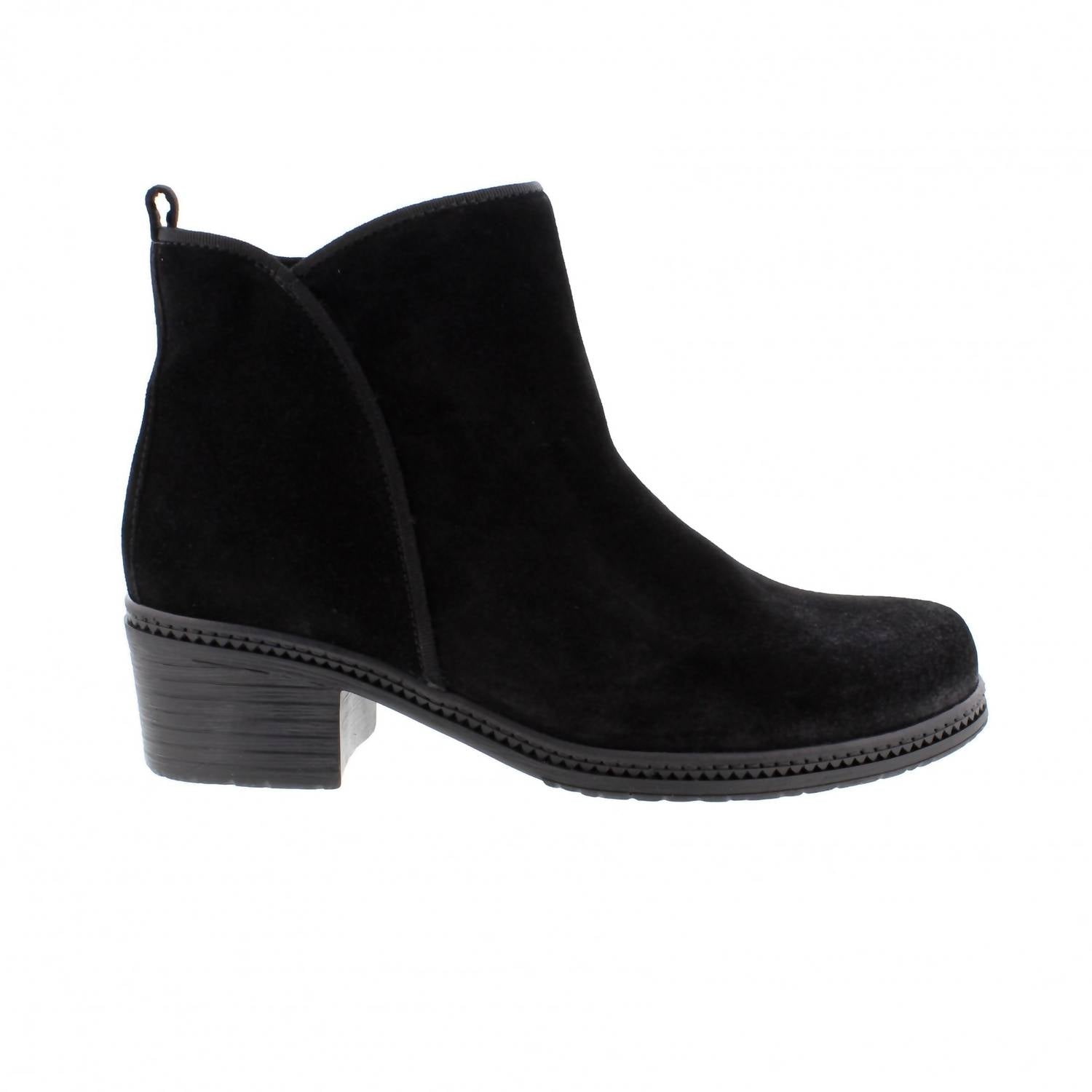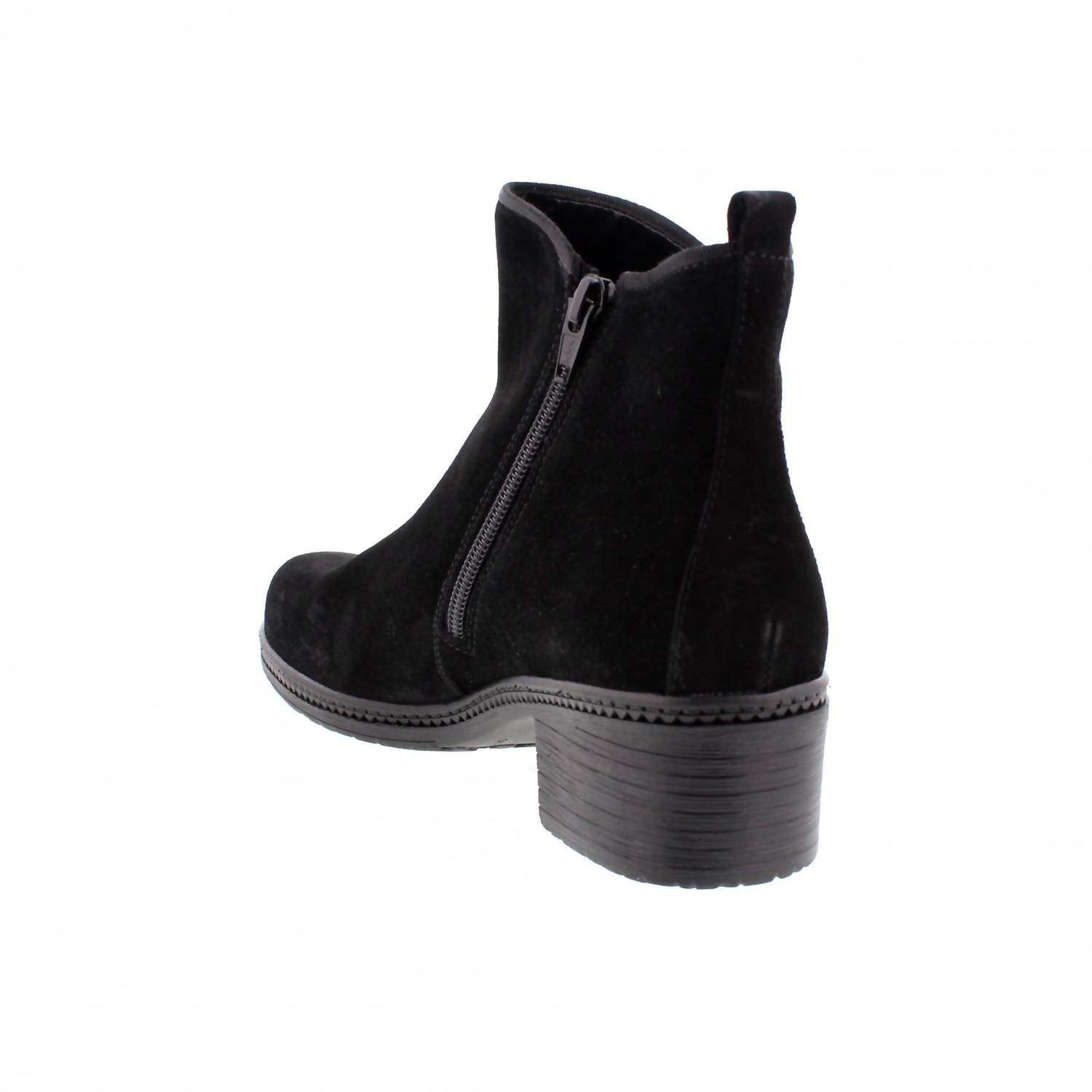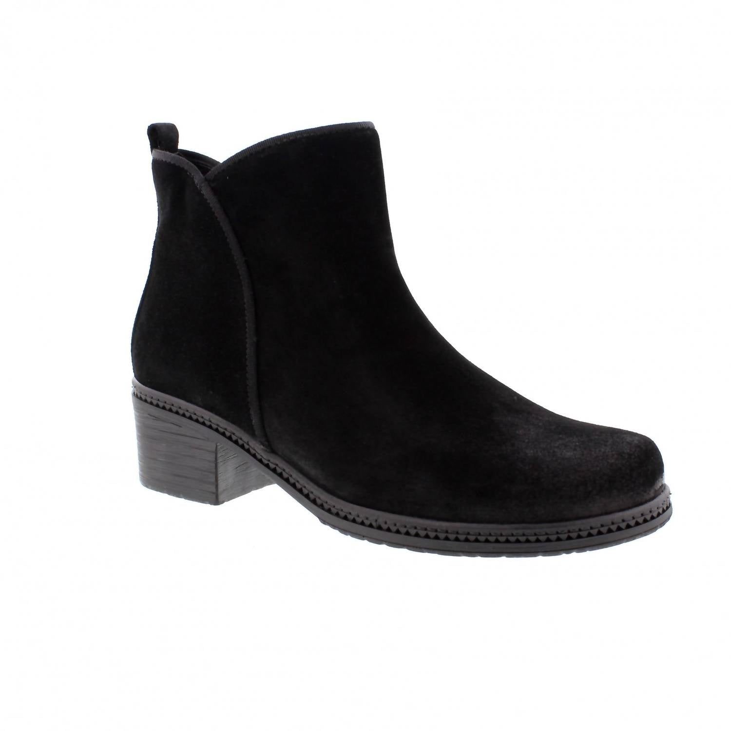 Say hello to the perfect, most versatile boot. The ankle height makes this style easily transition from day to night. Wear them with your favorite skinny jeans and tee for a more laid back look, or pair them with your favorite mini dress and jacket for a night out on the town. Discover the Women's Marlham Ankle Boots by Gabor, a chic choice for any wardrobe with their classic black suede finish. These ankle boots feature a round toe and a side zip closure, ensuring both style and ease of wear. Enjoy the comfort of a removable warm lining and insole, all set on a flexible manmade rubber sole with a 4.5 cm block heel. Perfectly designed for comfortable elevation, these boots are ideal for any adult woman seeking style and comfort.