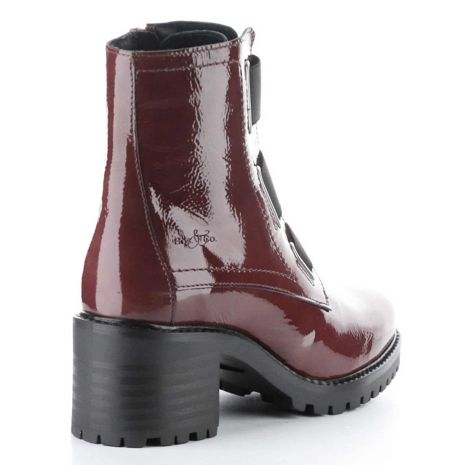 Say hello to the perfect, most versatile boot. The ankle height makes this style easily transition from day to night. Wear them with your favorite skinny jeans and tee for a more laid back look, or pair them with your favorite mini dress and jacket for a night out on the town. Introducing the Indie Mosto Boots by Bos. & Co., a perfect blend of durability and style in rich burgundy. These booties feature wide elastic straps and a chunky lug sole with a 2 1/2" heel on a 3/4" platform, providing comfort without compromising on stability. Made with a mix of leather and synthetic materials, they boast a waterproof Aquastop membrane and a moisture-wicking sock liner for dry, comfortable feet. The handy side zip ensures easy wearability, and with a 5 1/2" shaft height, these boots are made in Portugal to keep you stylishly prepared for any weather.