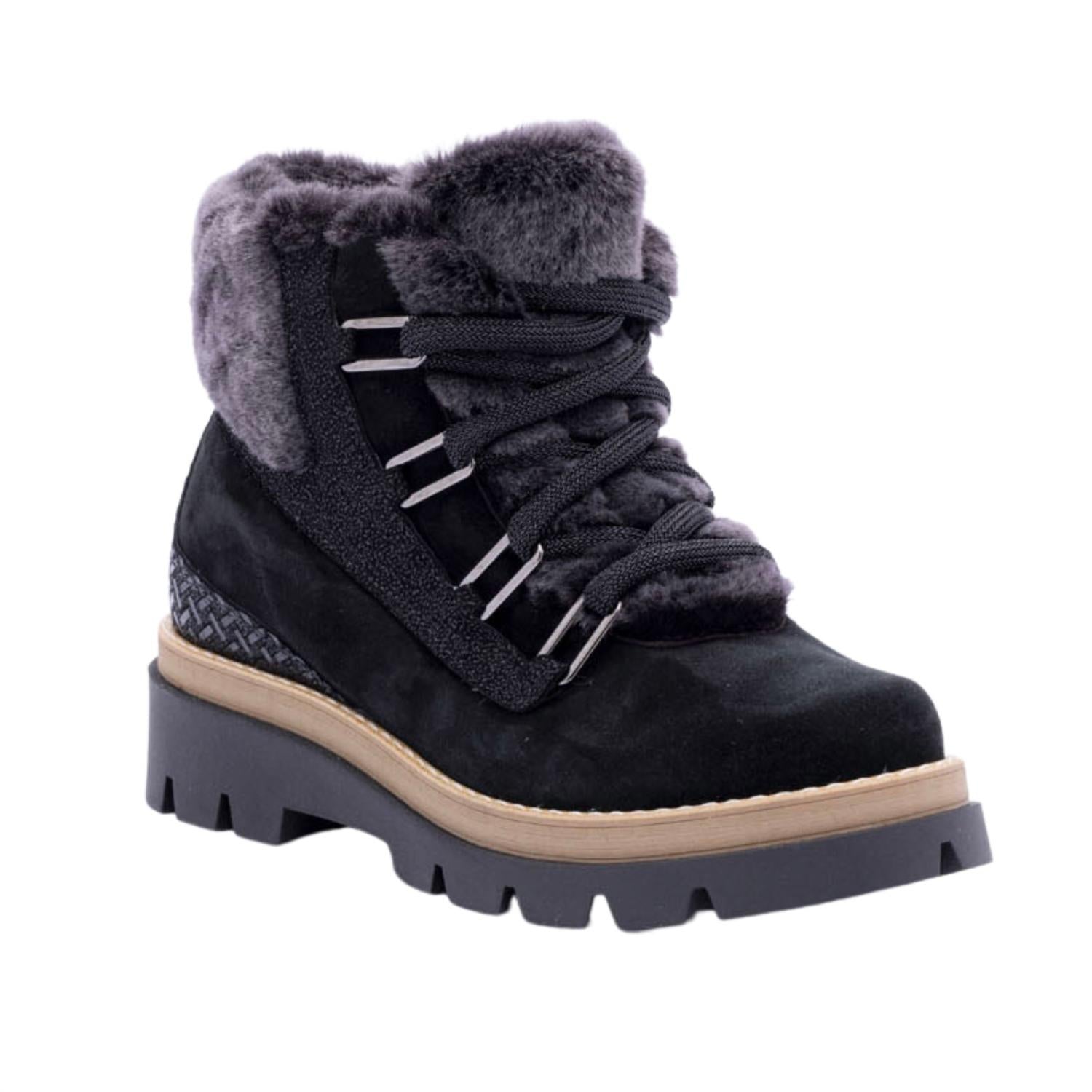 Features a leather upper and shearling lining at the ankle, and a lace-up front with metal grommets. Upper: Leather. Spot clean. Heel height: 1.18in. Made in Italy.