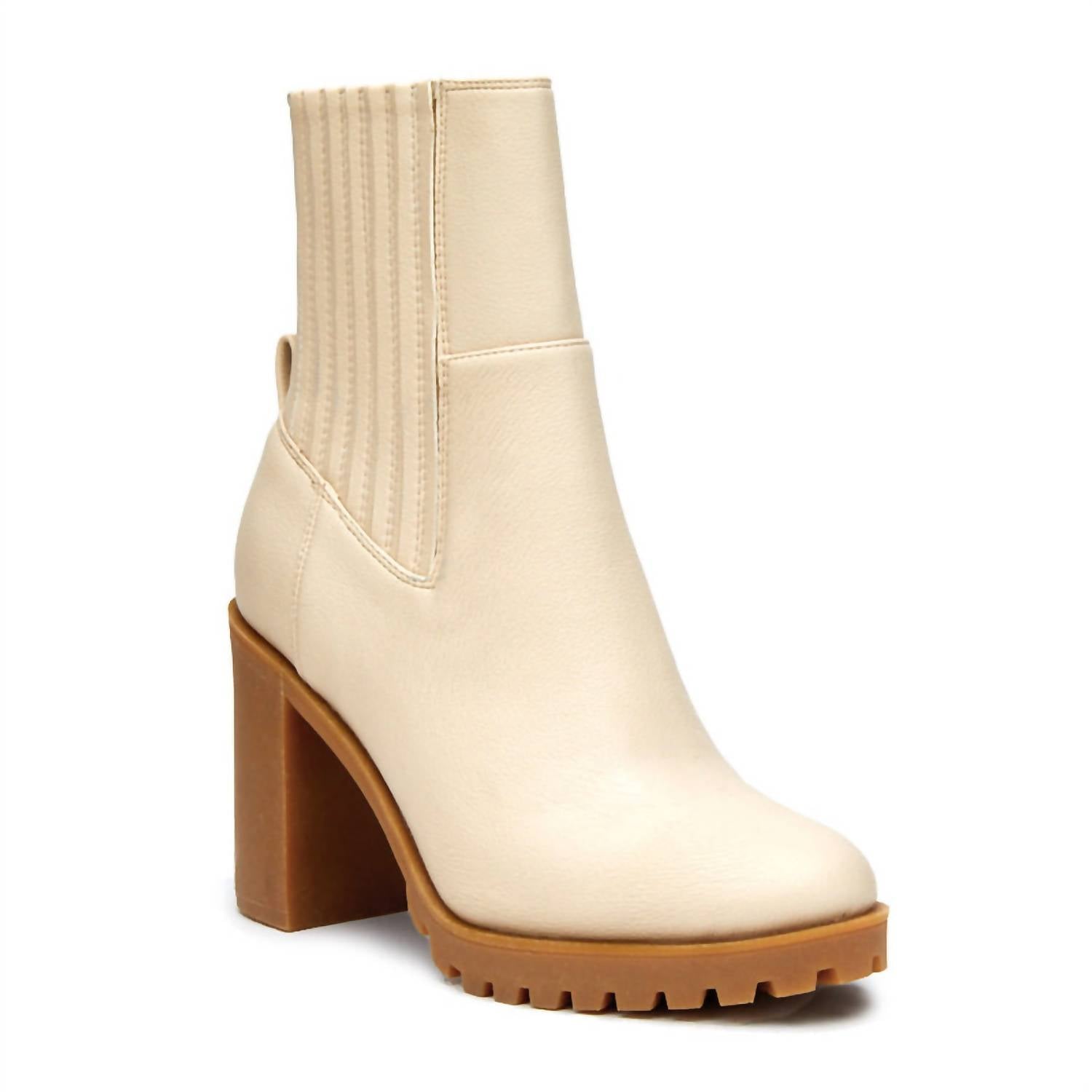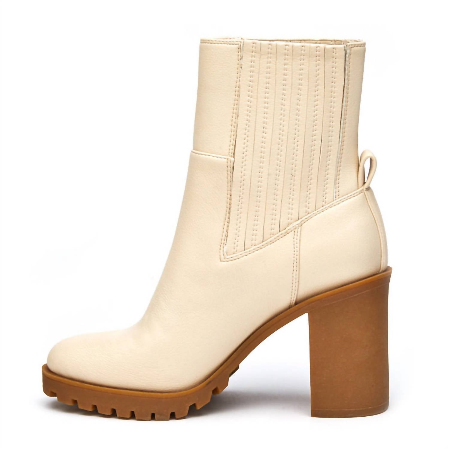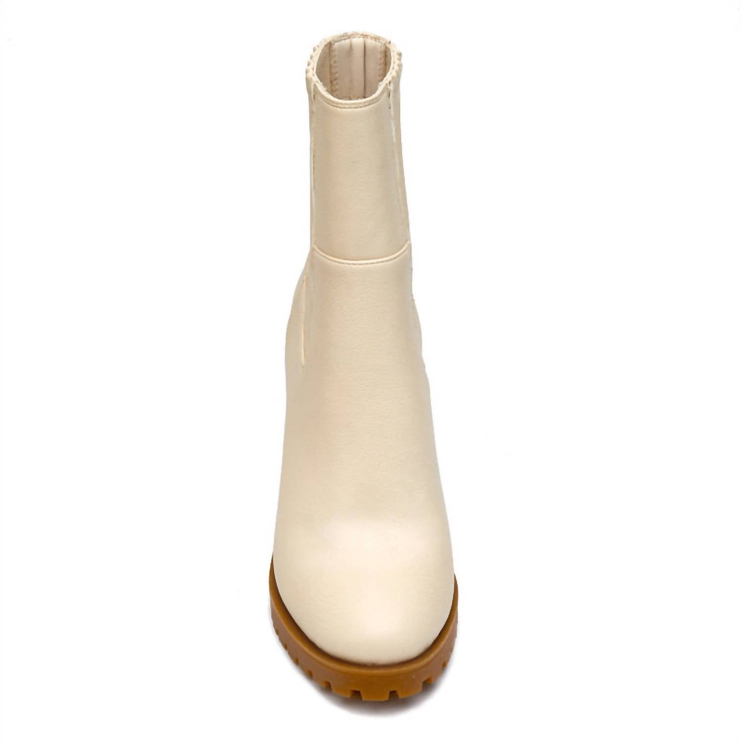 Elevated, vegan Chelsea-style heeled boot with covered gore detail. Details: Synthetic leather upper. Manmade outsole. 3.5 in / 8.89 cm heel. 0.75 in / 1.91 cm platform. 6.5 in / 16.51 cm shaft height. 10 in / 25.4 cm boot opening. Textile lining. Padded insole. Pull-on style. Imported. *Measurements taken from size 6 US
