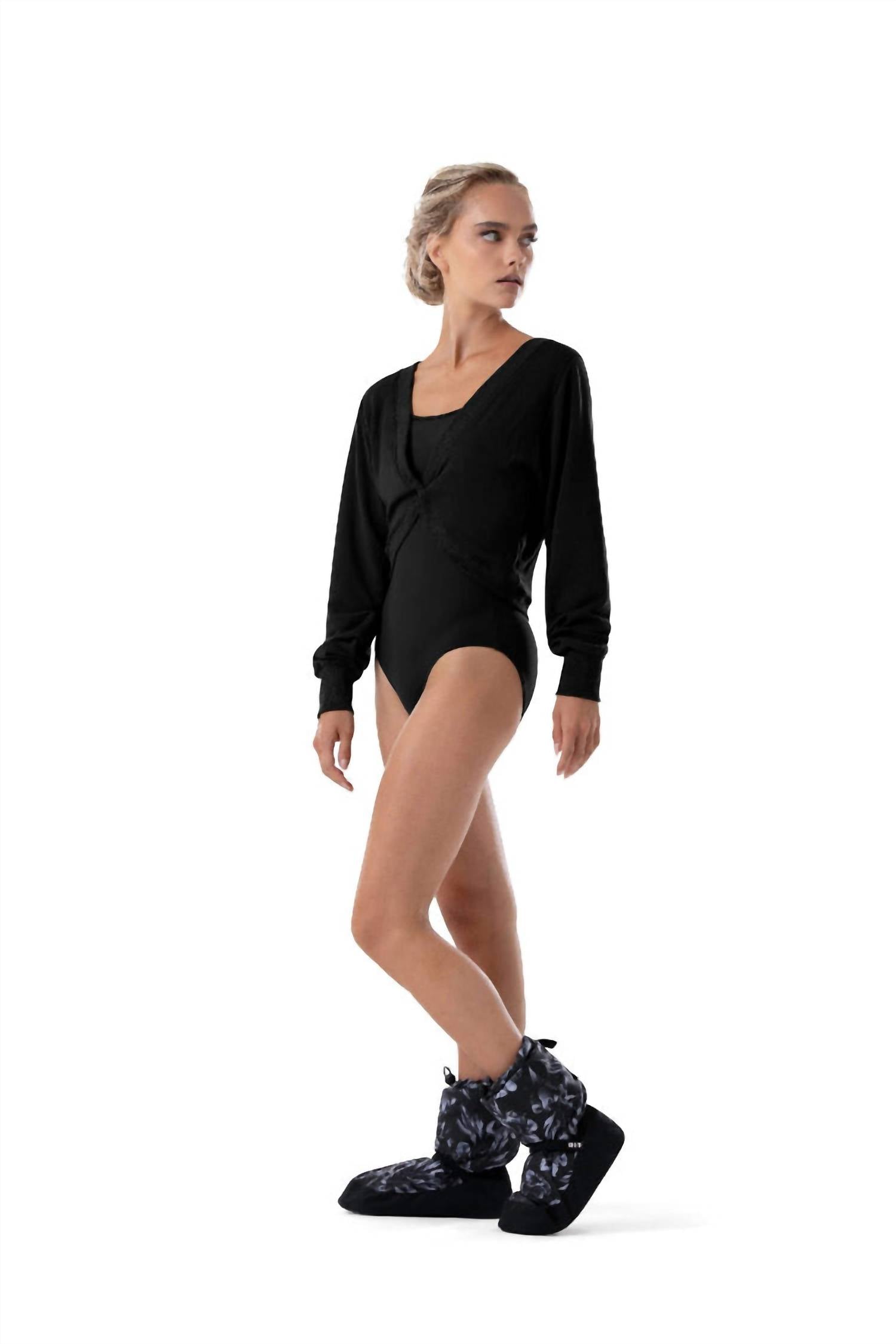 Say hello to the perfect, most versatile boot. The ankle height makes this style easily transition from day to night. Wear them with your favorite skinny jeans and tee for a more laid back look, or pair them with your favorite mini dress and jacket for a night out on the town. The Adult Warm Up Bootie by Bloch is an essential accessory for every dancer, designed to provide exceptional warmth and comfort. Featuring a flat heel and a round toe, these booties are composed of a 100% nylon shell filled with 100% polyester, ensuring your feet stay cozy. The stylish black floral pattern adds a unique touch to your dance wardrobe, and it comes with the iconic BLOCH rubber logo badge on the strap. These booties are not recommended for outdoor use and are designed to be worn indoors, ideally in studio settings.