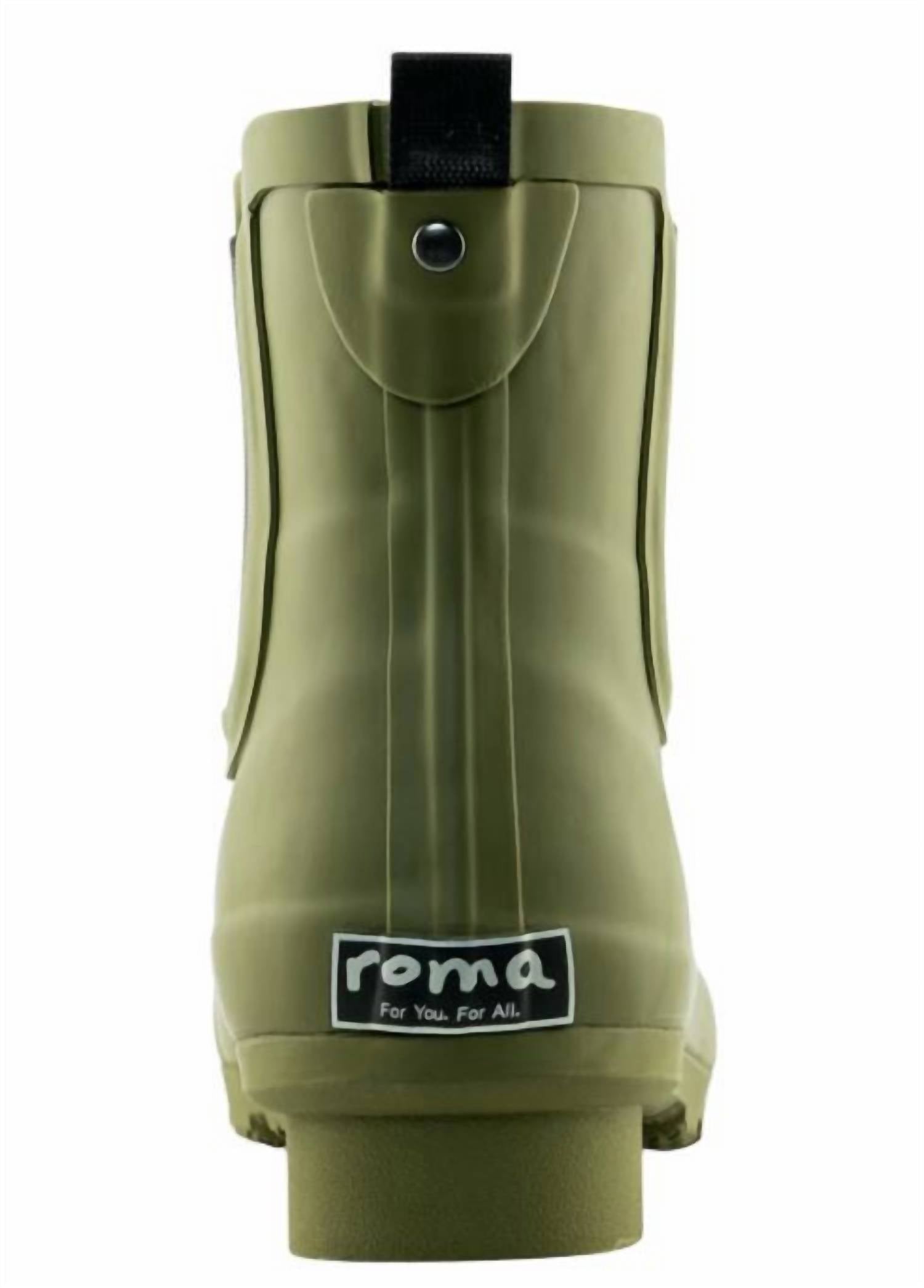 Rainboots so cute, you'll want to wear these even on the lightest drizzle days. Step out in style with the Roma Women's Chelsea Rain Boots in Olive, perfect for just about any occasion. Crafted with a durable rubber material, these boots promise to keep your feet dry and comfortable, thanks to their all-natural waterproof rubber outsole and quick-dry knitted cotton lining. The low heel height of 1 1/4" to 2" adds a subtle lift, making them a stylish choice for winter or rainy days. Sizing runs slightly large; it's recommended to size down if you're between sizes.