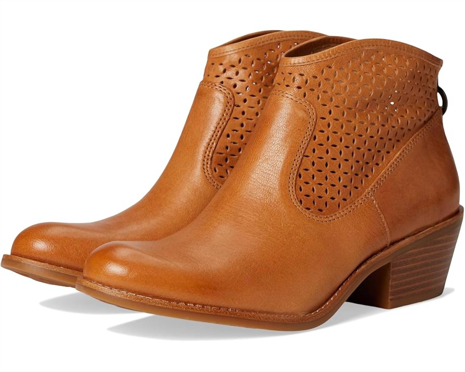Say hello to the perfect, most versatile boot. The ankle height makes this style easily transition from day to night. Wear them with your favorite skinny jeans and tee for a more laid back look, or pair them with your favorite mini dress and jacket for a night out on the town. Introducing the Women's Aisley Boot by Sofft, a sophisticated blend of classic and modern style in Apricot Tan. Designed with a premium leather composition, this ankle boot features a short shaft, laser-cut perforated detailing, and a 2-inch block heel for a chic silhouette. The back zipper with a signature ring pull allows for convenient wear, while the leather-lined footbed with cushioning at the ball and heel ensures comfort. Complete with a lightweight TPR outsole and stitched leather welt, this boot is a perfect addition to any wardrobe.