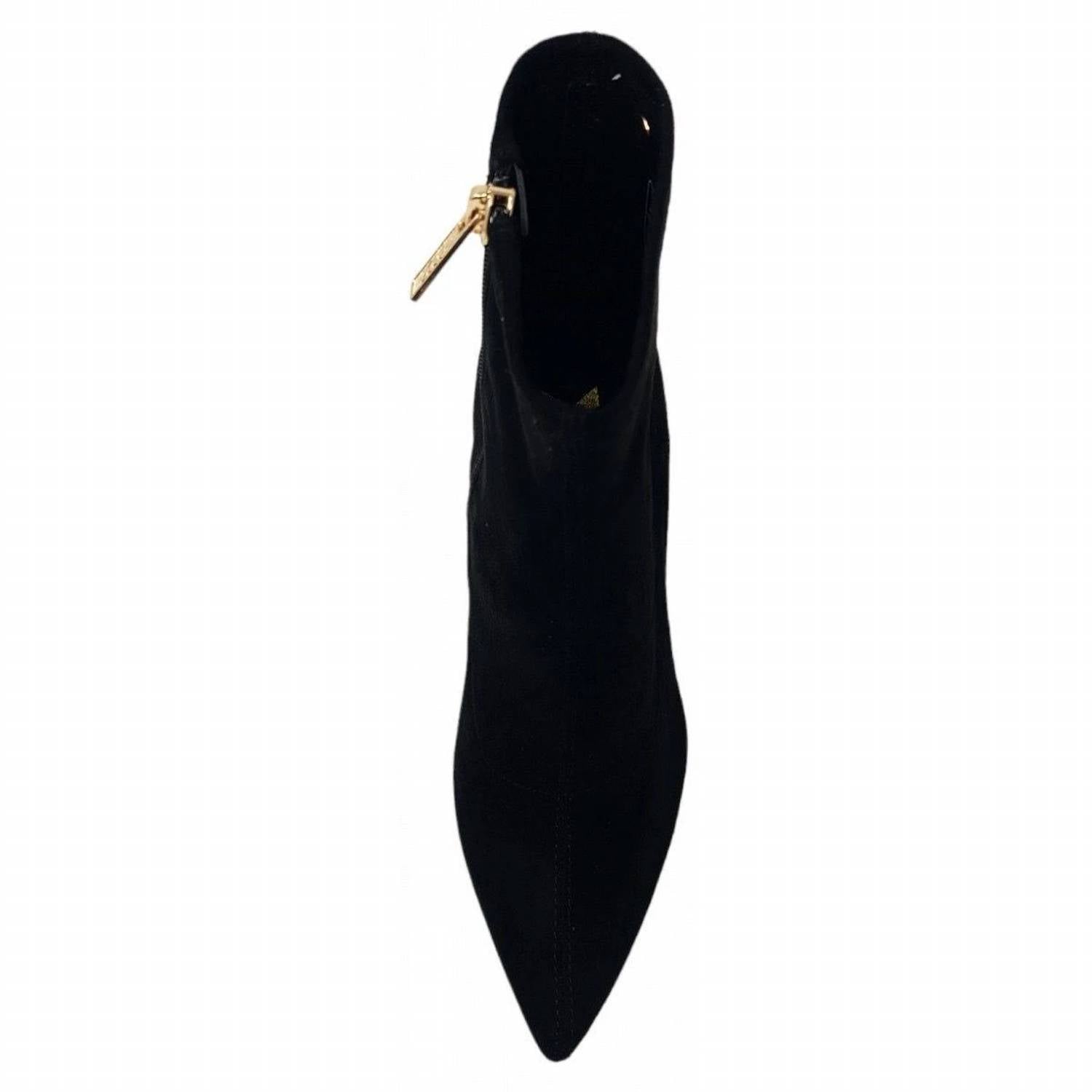 Women's Suede Dress Booties by Xti. Sleek black booties blending casual charm with all-day comfort. 3.15-inch heel for the perfect lift. Side zipper closure for easy wearability. Stretch upper loop for a secure fit. Lightweight, non-slip rubber sole for stability. Versatile for dressing up or adding polish to workwear. Your go-to choice for style and ease.