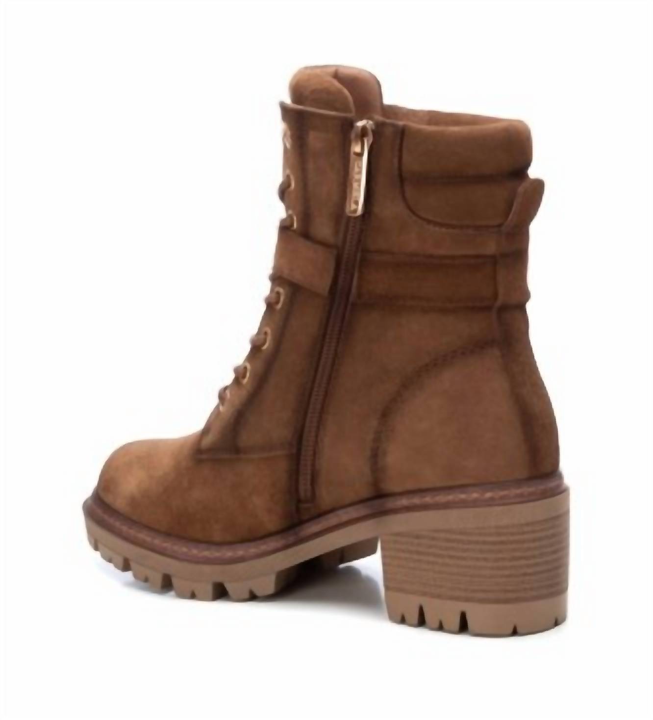 These 2.36 in suede booties are the perfect blend of casual and comfort. Trend design that goes well with every outfit. Strap with metallic buckle. Side zipper and lace-up closure. Lightweight non-slip rubber sole.