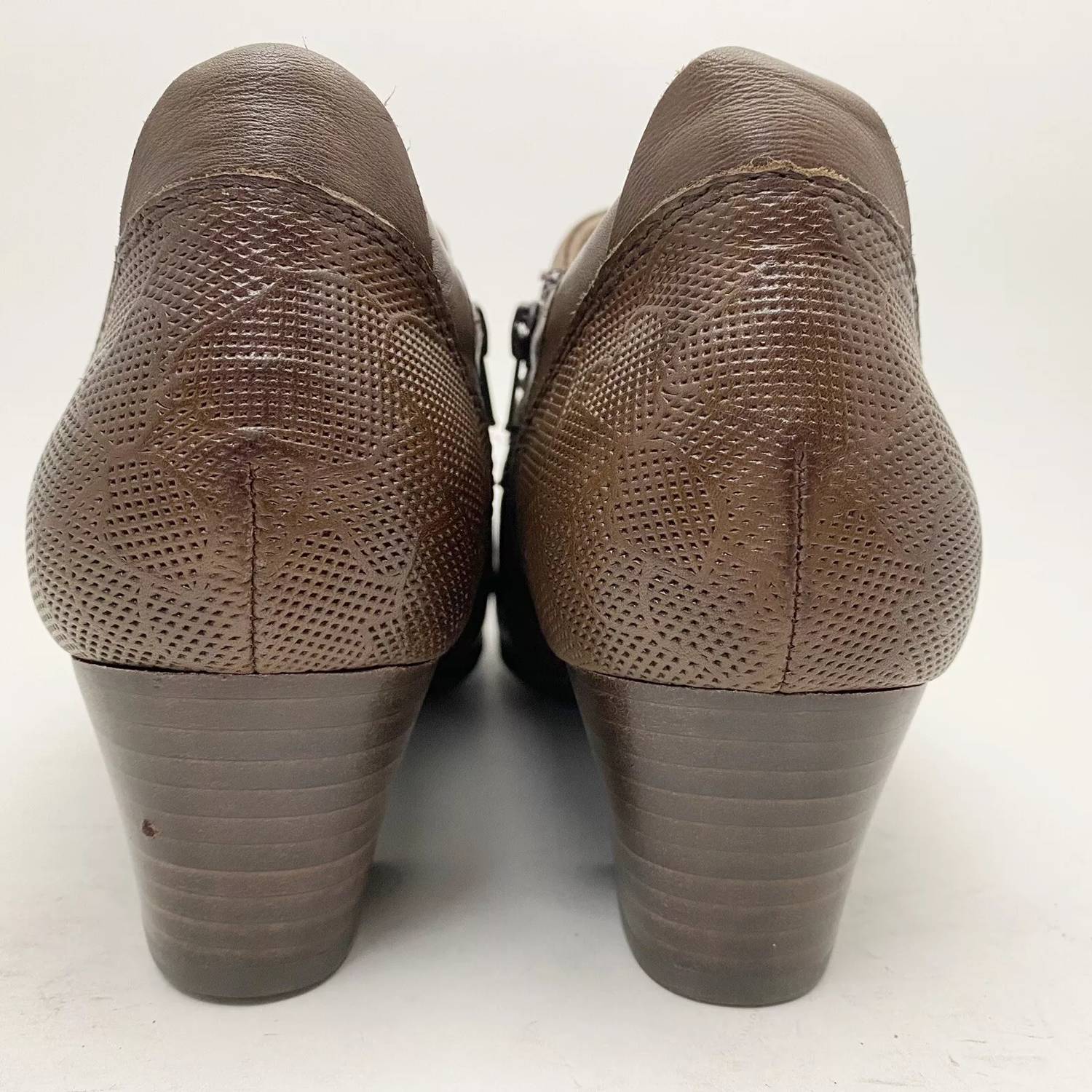 Say hello to the perfect, most versatile boot. The ankle height makes this style easily transition from day to night. Wear them with your favorite skinny jeans and tee for a more laid back look, or pair them with your favorite mini dress and jacket for a night out on the town. Step into sophistication with the Toronto Leather Bootie by EARTH, crafted for women with an eye for style. In a rich Bark color, this ankle boot features a round toe and a comfortable medium shoe width, ideal for everyday wear. The block heel offers a mid-height elevation, ranging from 2 1/4" to 3", perfect for both comfort and elegance. Elevate your wardrobe with these versatile booties that are suited for any occasion.