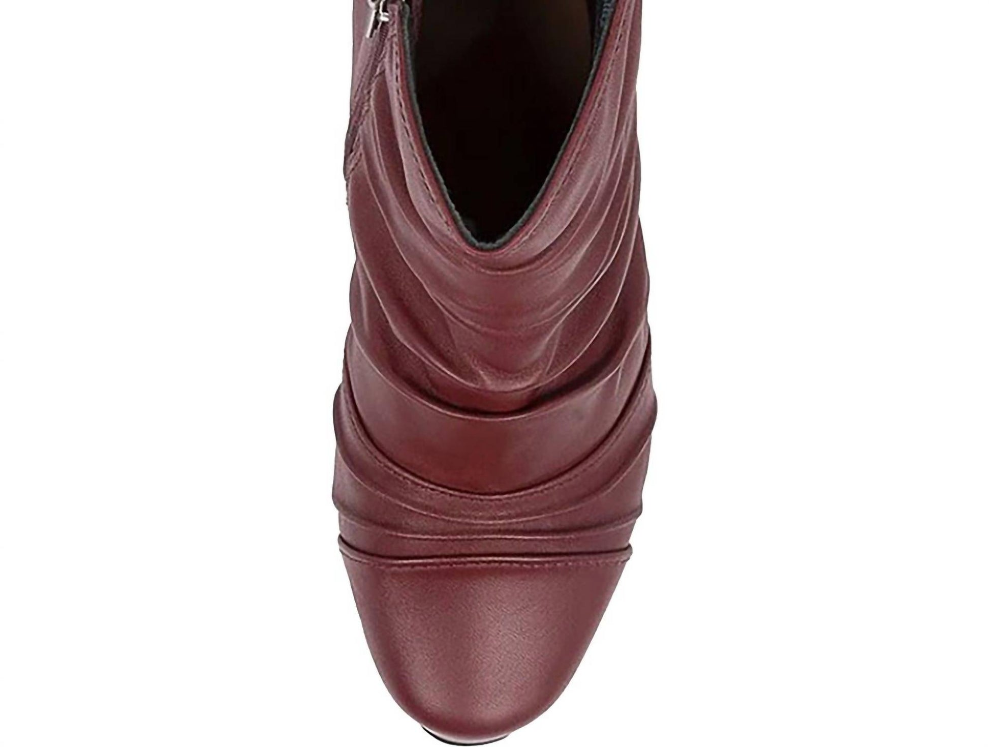 A stylish boot with a comfortable fit and the perfect amount of height. These classic boots are the perfect addition to any outfit and can be worn season after season. Introducing the Ziera Camryn Women's Boots in Dark Red Leather, a perfect blend of comfort and style for the fall season. These heeled boots feature a sturdy low block heel with a height of 1.378 inches, complemented by an almond toe shape and extra wide fit for added comfort. Crafted from genuine leather with a chic zip trim, they offer a secure zip fastening and a Super Support footbed for enhanced stability. Ideal for a vacation-ready look, these boots are a standout in the Scandi style trend.