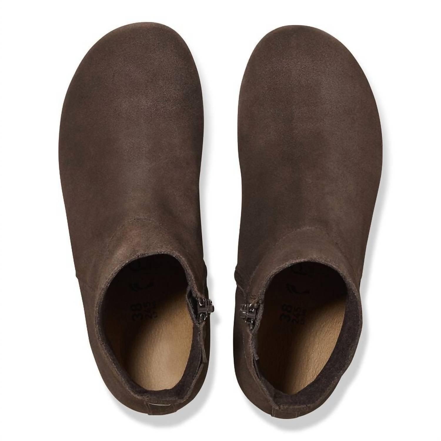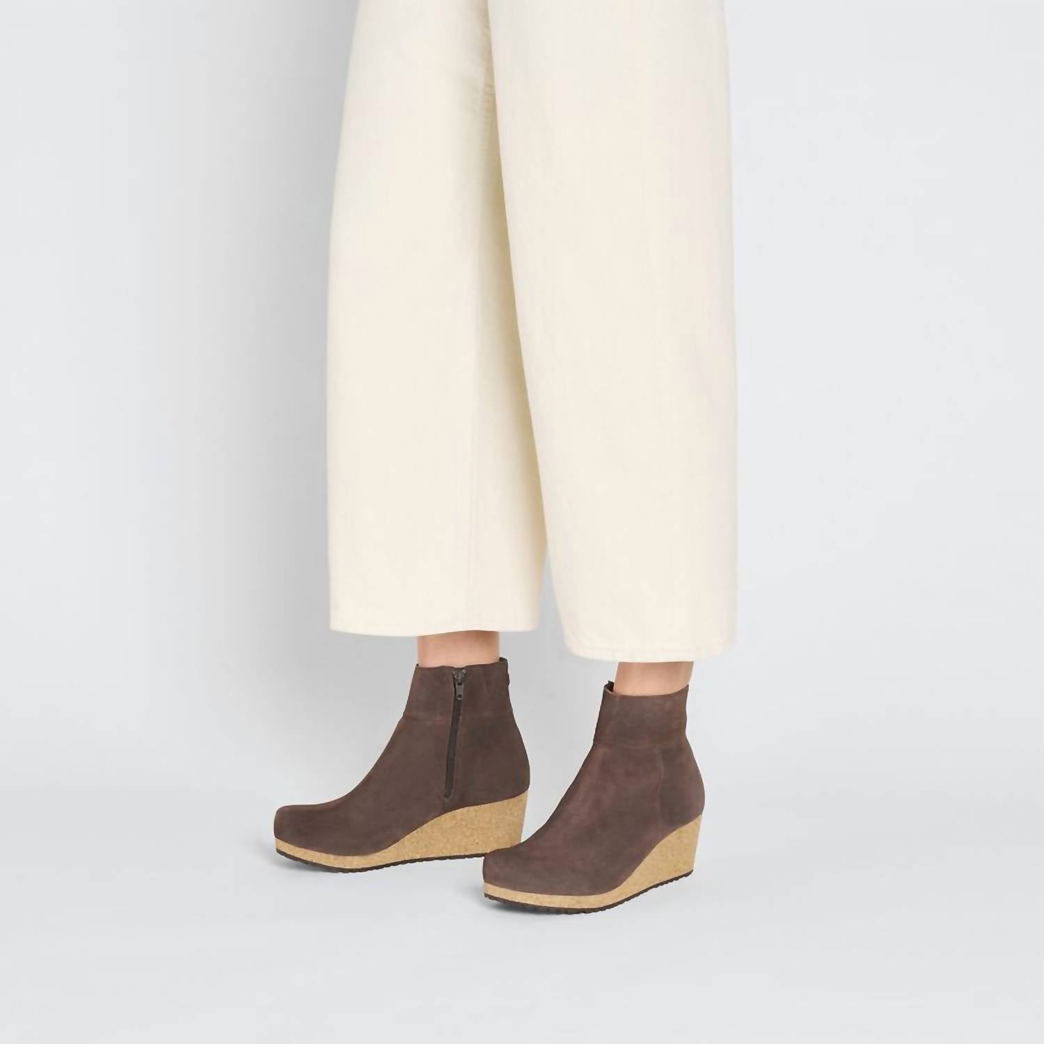 Say hello to the perfect, most versatile boot. The ankle height makes this style easily transition from day to night. Wear them with your favorite skinny jeans and tee for a more laid back look, or pair them with your favorite mini dress and jacket for a night out on the town. The Ebba ankle boot combines the comfort of a contoured footbed with the lift of a cork wedge heel, designed to support without adding pressure to the forefoot. Crafted in smooth suede with a soft suede footbed lining, it delivers a classic look with lasting comfort. A lightweight PU sole completes the design, making it an effortless way to elevate your style.