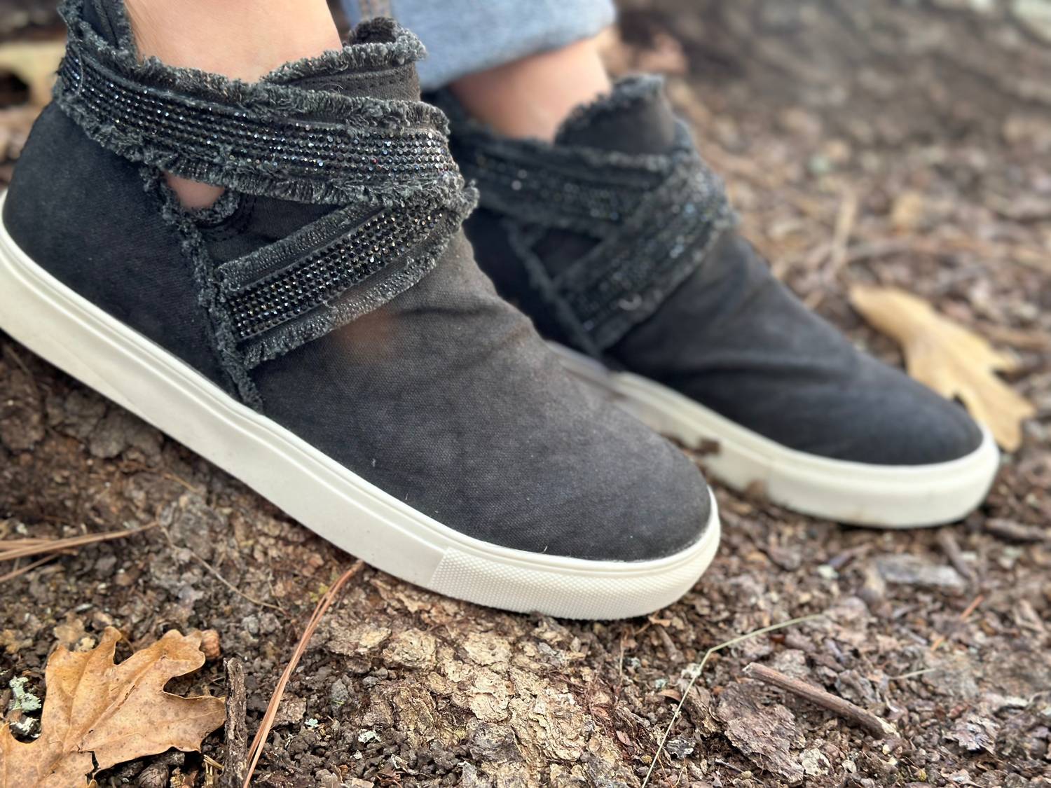 Say hello to the perfect, most versatile boot. The ankle height makes this style easily transition from day to night. Wear them with your favorite skinny jeans and tee for a more laid back look, or pair them with your favorite mini dress and jacket for a night out on the town. Step into style with the Women's Flora Booties by Gypsy Jazz, perfect for those who love a touch of sparkle. These black canvas ankle booties feature beautiful criss cross rhinestones that add a dazzling effect to any outfit. With a comfortable round toe design, they fit true to size for easy all-day wear. Enjoy your new pair straight from the box and embrace their chic, versatile appeal.