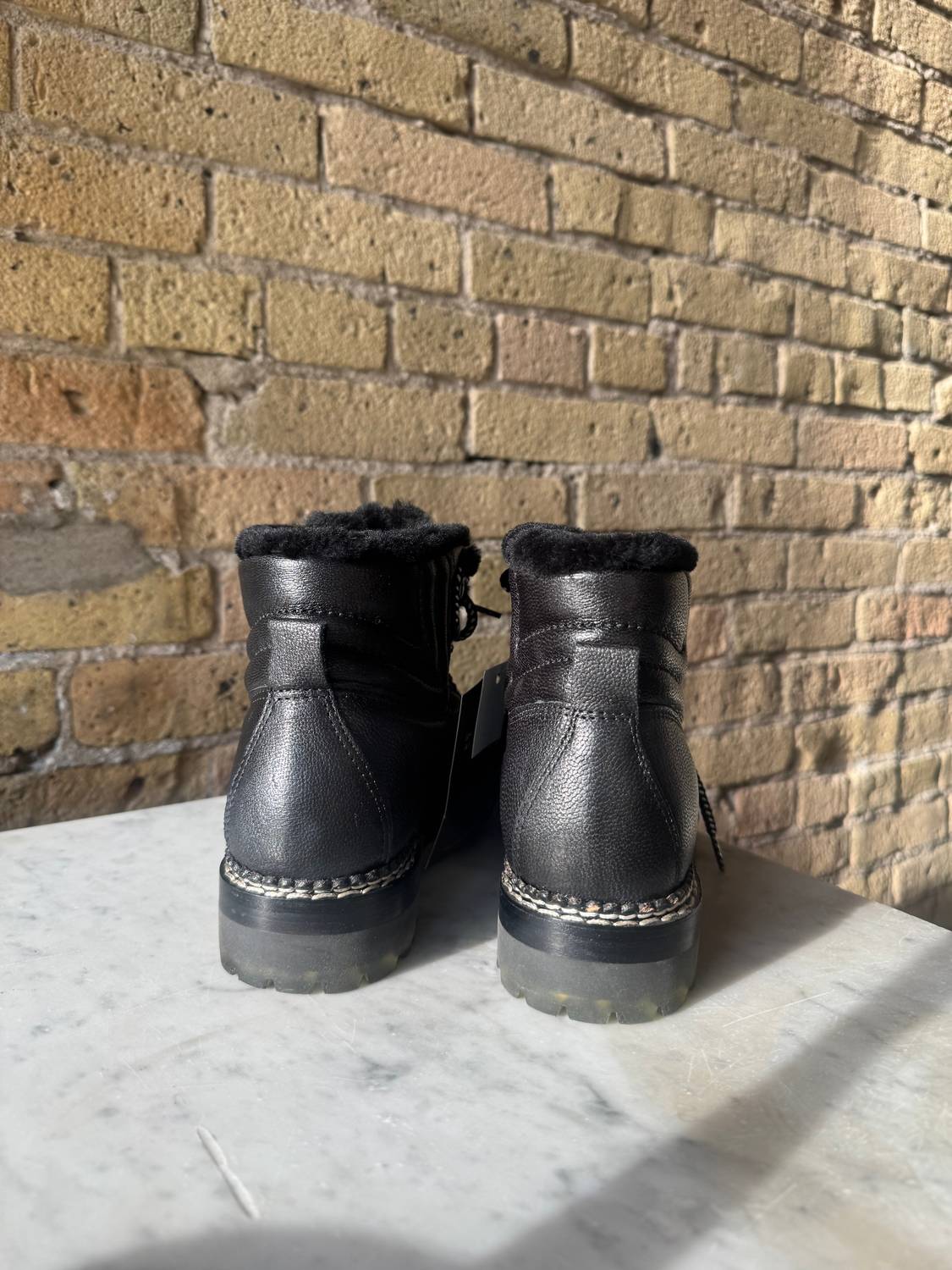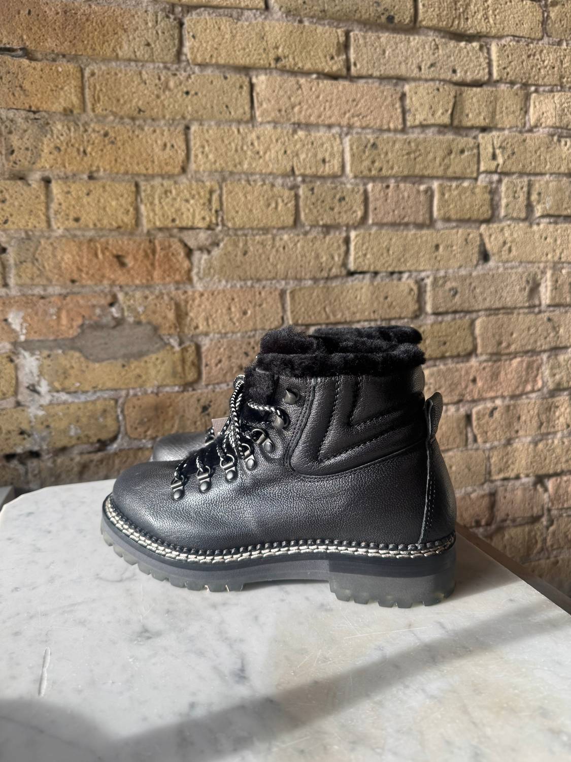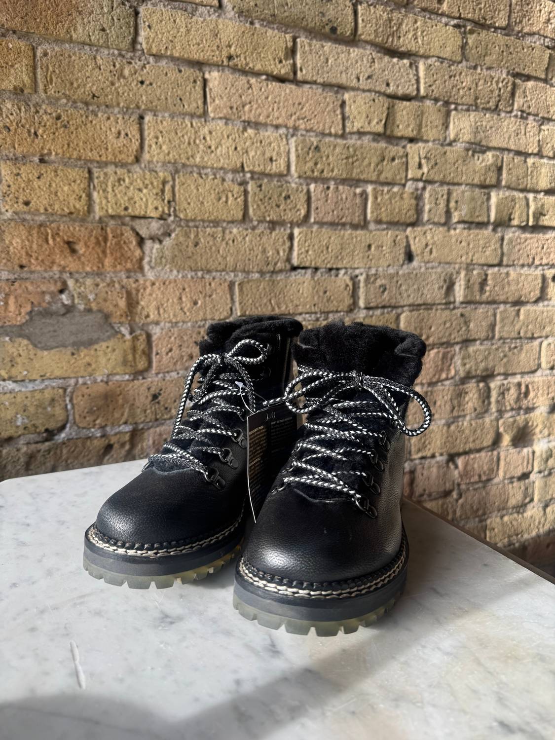 Say hello to the perfect, most versatile boot. The ankle height makes this style easily transition from day to night. Wear them with your favorite skinny jeans and tee for a more laid back look, or pair them with your favorite mini dress and jacket for a night out on the town. Step into style with the Women's Camelia Shear Boot by Montelliana, a chic choice for your vacation wardrobe. This monochrome ankle boot boasts a round toe and a trendy block heel, standing at a low height of 1 1/4" to 2". Ideal for the fall season, this pair effortlessly combines comfort and elegance in classic black. Made for women, it perfectly suits any adult looking to add a versatile touch to their ensemble.