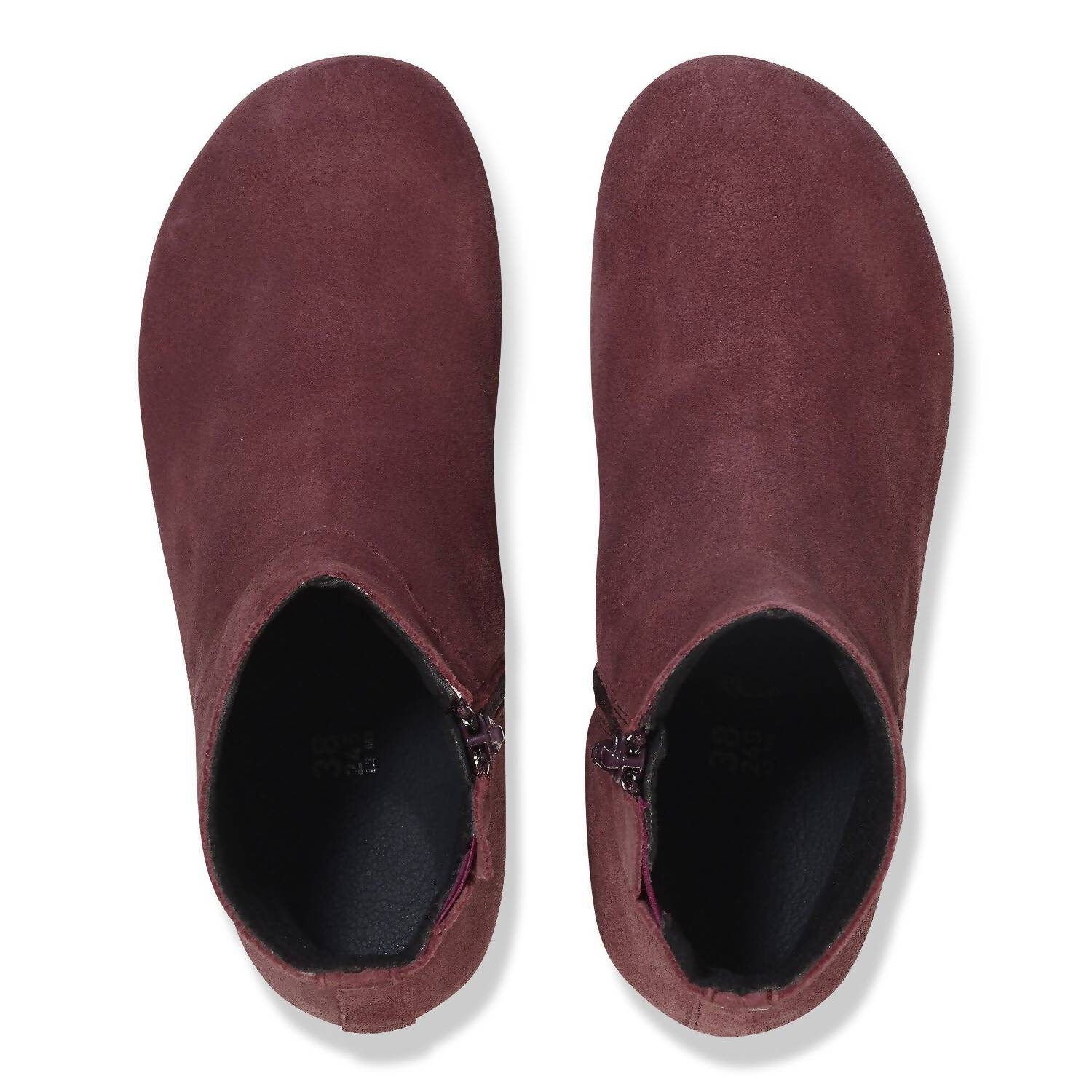 Say hello to the perfect, most versatile boot. The ankle height makes this style easily transition from day to night. Wear them with your favorite skinny jeans and tee for a more laid back look, or pair them with your favorite mini dress and jacket for a night out on the town. Introducing the Women's Ebba Boots by Papillio, a chic addition to your fall wardrobe in the captivating color Berry Crush. These ankle boots combine a classic suede upper and suede footbed lining with a wedge heel, providing both style and comfort. Made in Portugal, they feature a contoured cushion footbed that shapes to your foot for personalized support. Perfect for daily wear with a round toe design and lightweight PU sole.