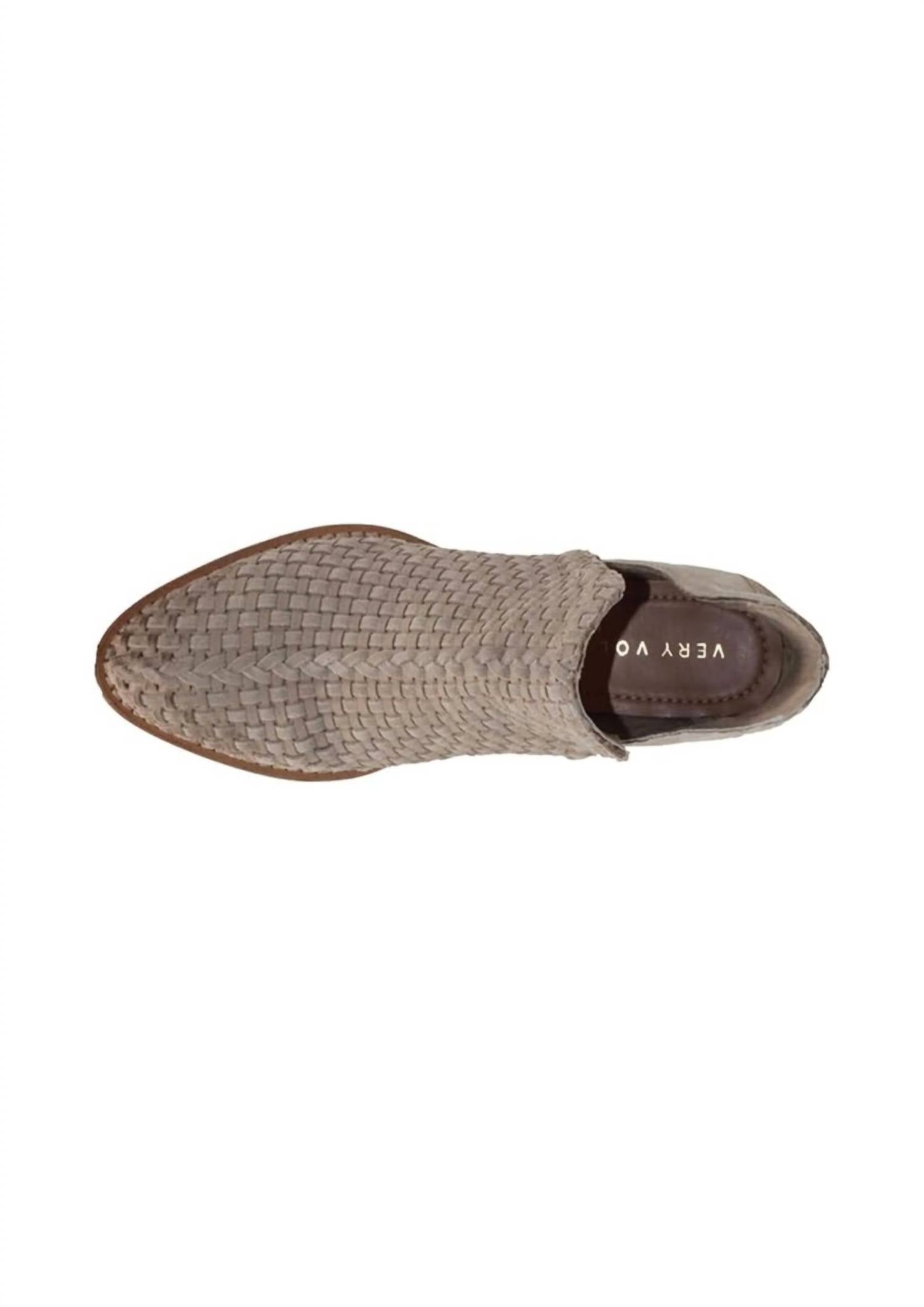 Say hello to the perfect, most versatile boot. The ankle height makes this style easily transition from day to night. Wear them with your favorite skinny jeans and tee for a more laid back look, or pair them with your favorite mini dress and jacket for a night out on the town. Step into style with the Women's Veracruz Ankle Boot by VOLATILE. Expertly crafted with a handwoven leather upper and a durable rubber outsole, this ankle boot showcases a minimalist touch with its round toe and tan hue. Enjoy added comfort from its padded insole and a sleek 4-inch shaft height, with an 11.75-inch shaft circumference ensuring a refined fit. Proudly made in India, these boots are perfect for spring and designed for the modern, stylish woman.