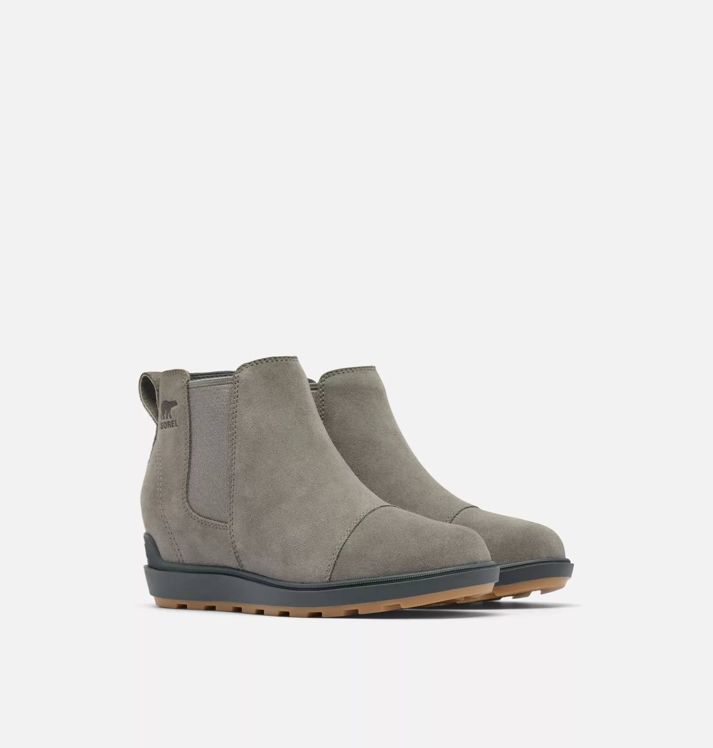 Say hello to the perfect, most versatile boot. The ankle height makes this style easily transition from day to night. Wear them with your favorite skinny jeans and tee for a more laid back look, or pair them with your favorite mini dress and jacket for a night out on the town. Experience all-day comfort and style. Crafted from waterproof full-grain leather and suede. Feature elastic gore panels for easy entry and a breathable textile lining. Molded rubber outsole and BPU-PU wedge midsole ensure durability and support, with a 2-inch heel and 1/2-inch platform. Boast a round toe and a shaft height of 3 3/4 inches with an 8-inch circumference.