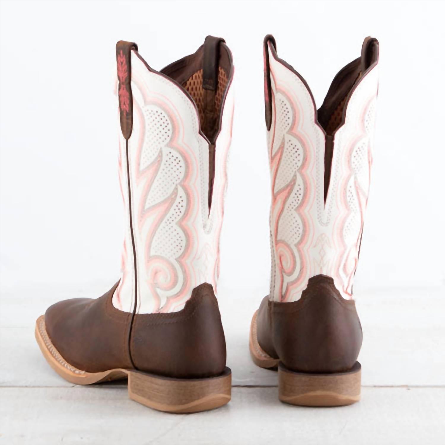 Say hello to the perfect, most versatile boot. The ankle height makes this style easily transition from day to night. Wear them with your favorite skinny jeans and tee for a more laid back look, or pair them with your favorite mini dress and jacket for a night out on the town. Step into style with the Women's Lady Rebel Pro Boot by Durango Boots, a perfect companion for your summer adventures. These ankle boots feature a squared toe shape and a flat heel under 1", ensuring comfort for all-day wear. The Trail Brown/White colorway adds a touch of Western flair, making them ideal for vacation occasions. Please note that the country of origin is not specified.