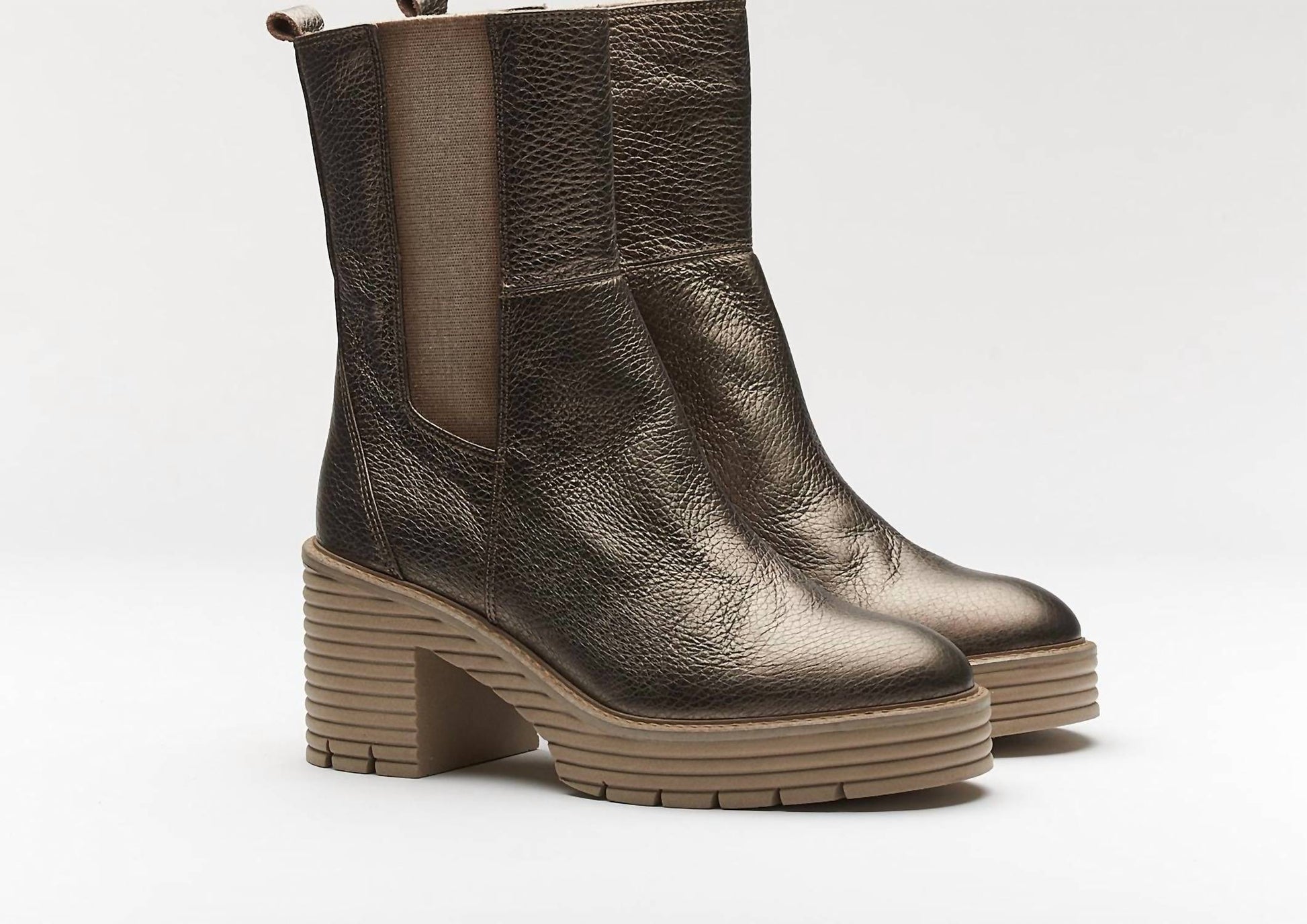 Say hello to the perfect, most versatile boot. The ankle height makes this style easily transition from day to night. Wear them with your favorite skinny jeans and tee for a more laid back look, or pair them with your favorite mini dress and jacket for a night out on the town. Step out in style with the Women's Margo Boots by Softwaves, expertly crafted in Portugal. These ankle boots come in a sophisticated metal taupe leather, offering both sleek aesthetics and impressive durability. Featuring a cushioned footbed, chrome-free lining, and a foam removable insole with arch support, they ensure comfort with every step. The mid-height block heel, measuring 2.75 inches, adds just the right amount of lift to elevate your look.