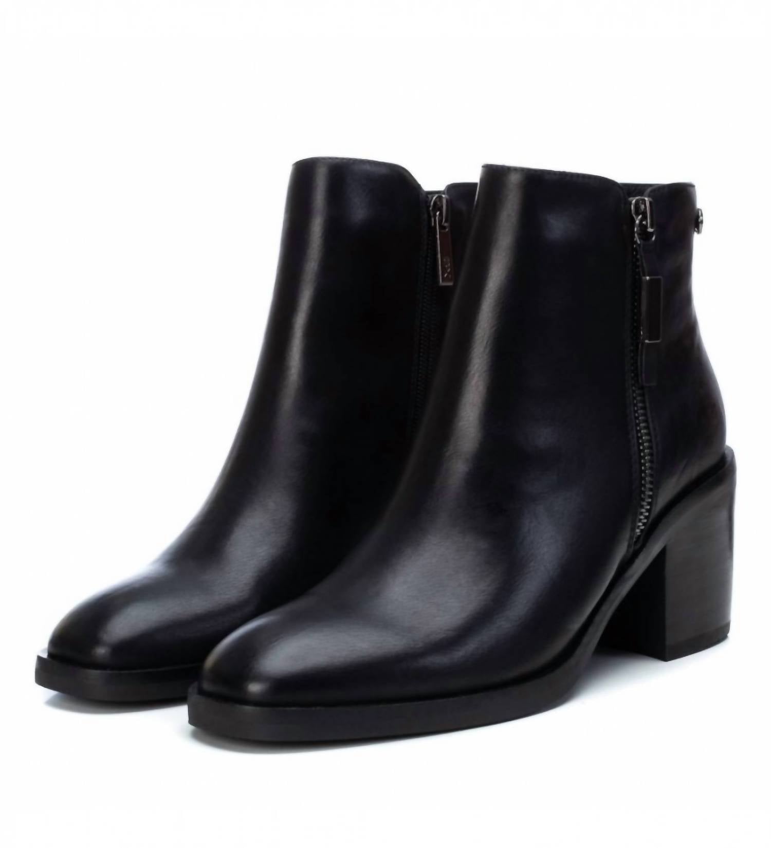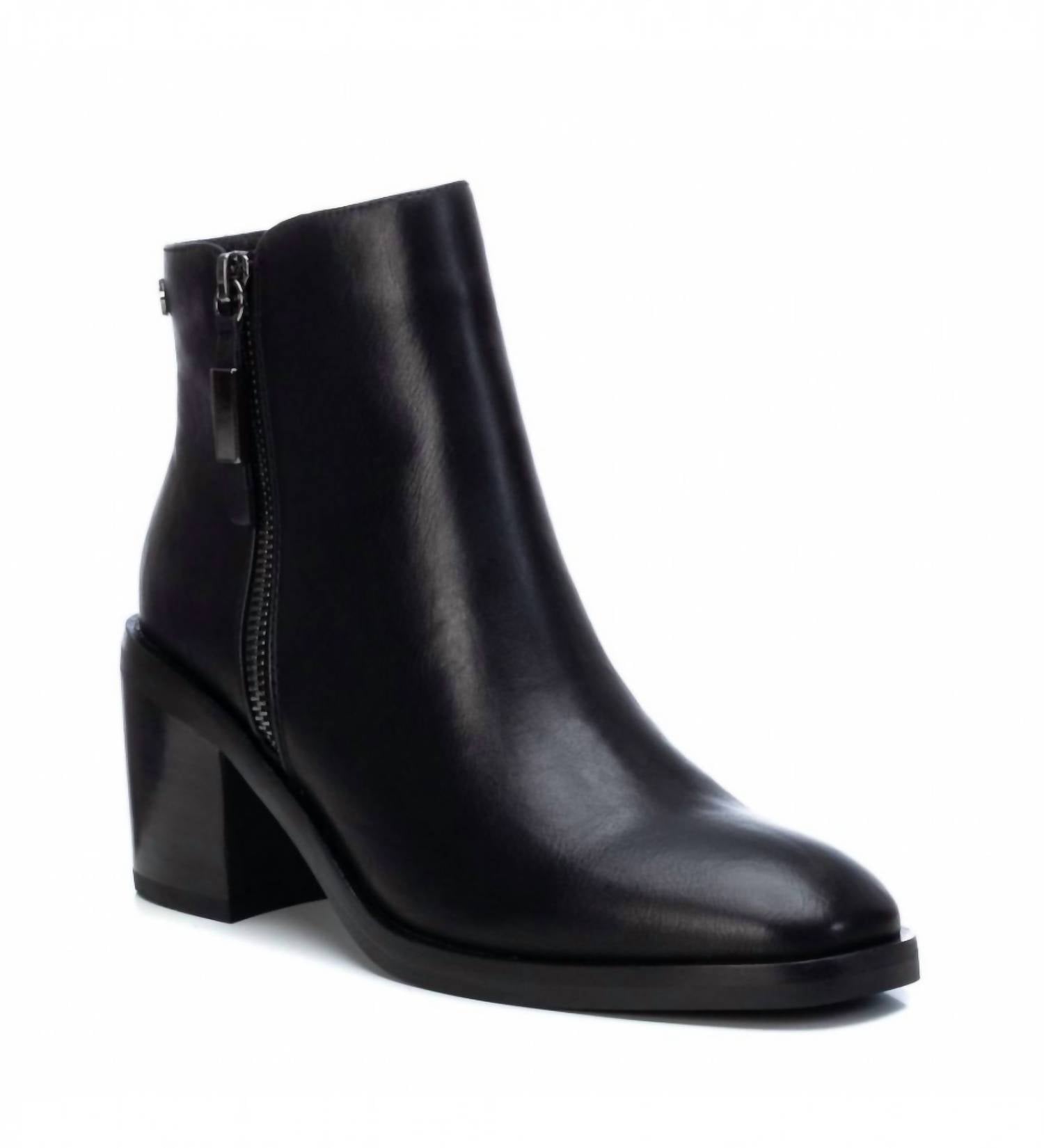 Crafted from premium material that imitates leather. The internal zip closure provides a sleek look while the decorative side zip adds a fashionable touch. Designed with a lightweight non-slip rubber sole. 2.76-inch heel.