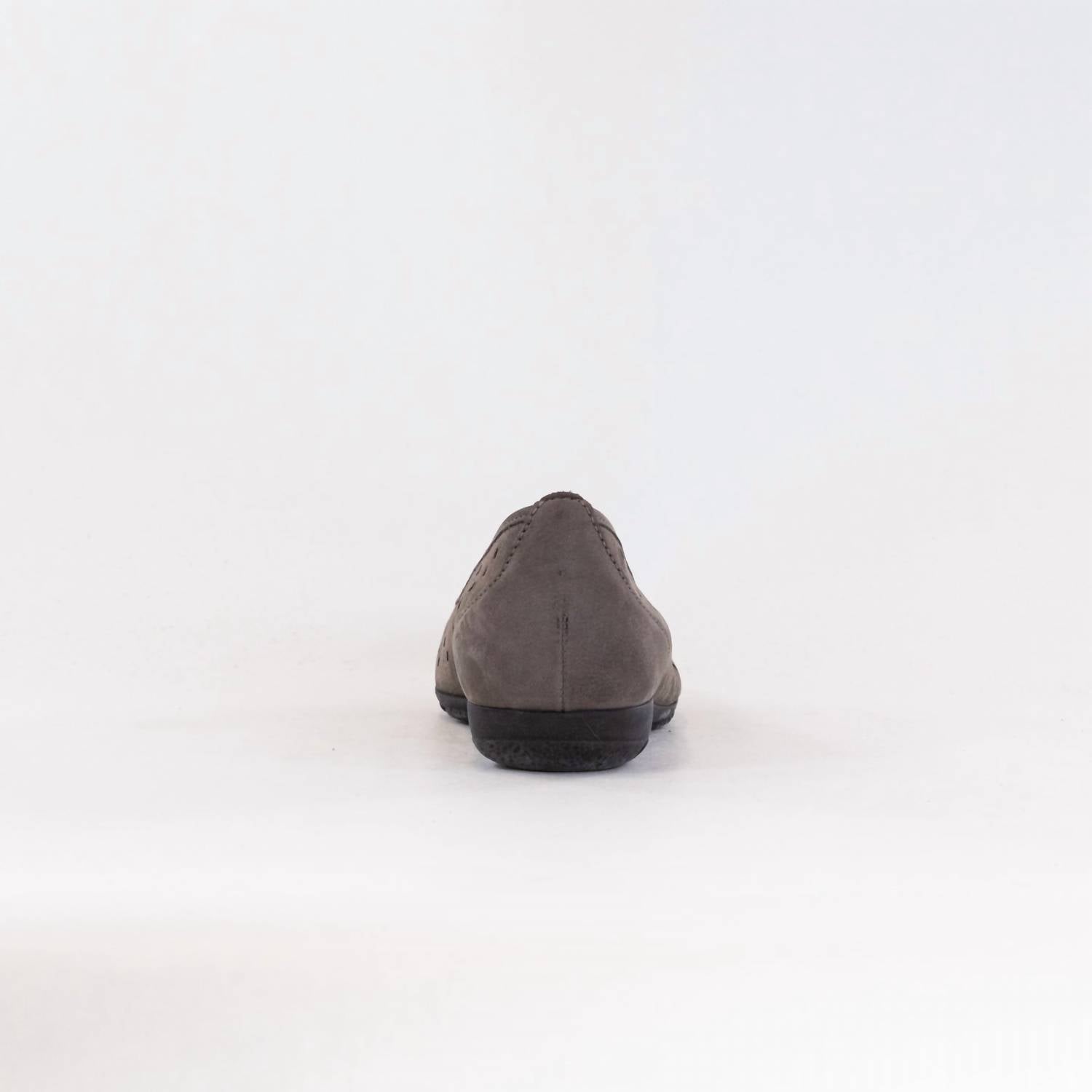 You'll be wishing for rainy days with these stylish yet functional rainboots. Experience ultimate comfort with the Women's Flat Sandal by Gabor, perfect for your spring vacations. Featuring a premium nubuck upper in a perforated design and wallaby color, this sandal also includes a leather-covered footbed with the innovative Hovercraft System for air-cushioning support. The flexible latex rubber sole and flat heel ensure ease with every step, while the stylish round toe shape adds a vintage flair. Ideal for medium-width fits, this sandal is a blend of elegance and practicality.