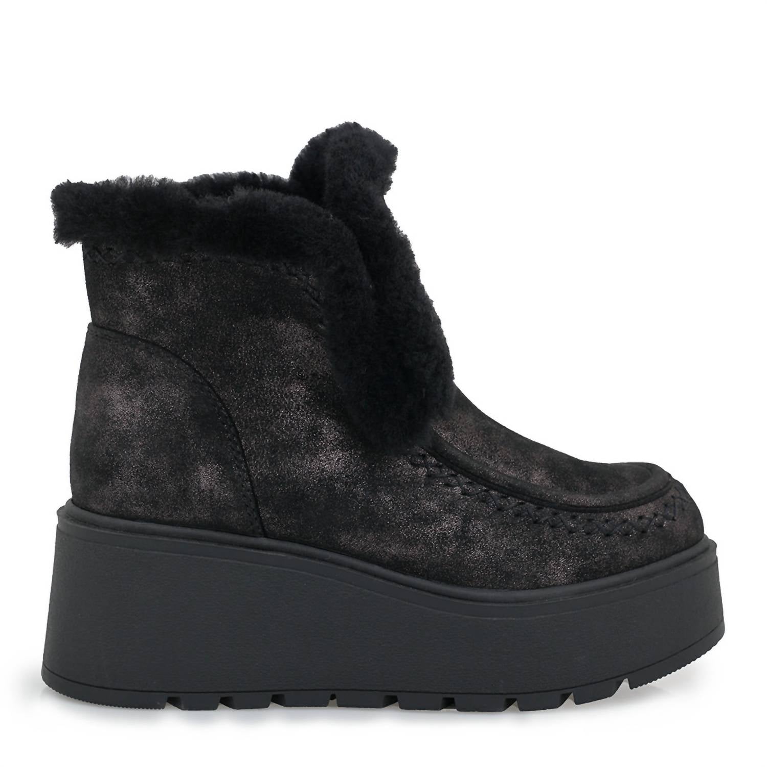 You'll be wishing for rainy days with these stylish yet functional rainboots. Step into winter with style and warmth with the Women's Apresi Ski Low Boots by Exe. These black ski boots feature a comfortable synthetic fur lining and a warm, soft insole, making them perfect for chilly days. Designed in Greece with a faux fur material, they boast a medium width and a round toe shape, ensuring a snug fit. The 2.8-inch platform heel adds a chic touch suitable for streetwear, vacation outings, or New Year's Eve celebrations.