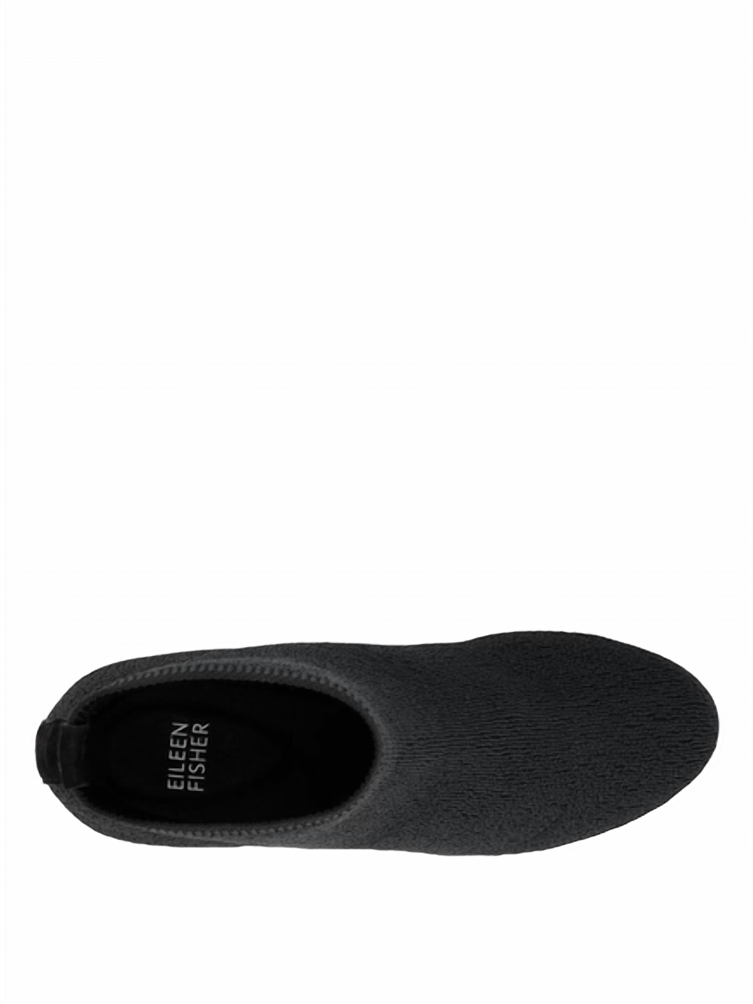 Leather outsole. 2 1/2" heel, 5" boot shaft. Round toe, stacked block heel, pull-on construction. Padded toe, arch, and heel for comfort. Upper partially lined in leather, leather lining at insole. 100% Post-consumer plastic bottles.