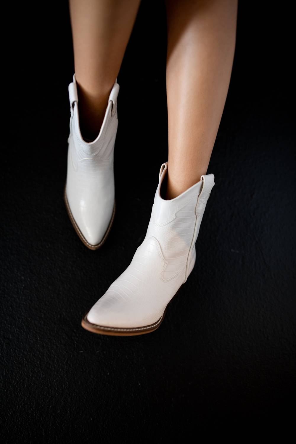 Step into rustic charm and pure elegance with the Dulcie Boot by ARider Girl. These Western-style booties are the epitome of countryside chic, seamlessly blending traditional design with modern flair. Crafted in a pristine white hue, the pointed toe not only elongates your silhouette but also adds a dash of sophistication to any outfit. Ideal for pairing with everything from denim to dresses, the Dulcie Boot ensures that you always step out with confidence and impeccable style. Whether you're navigating the urban jungle or strolling through quaint rural spaces, this ankle boot is your perfect companion for all seasons, promising unmatched versatility and timeless appeal. Made to embrace adventure, the Dulcie Boot lets you embody the spirit of the wild west with a contemporary twist.