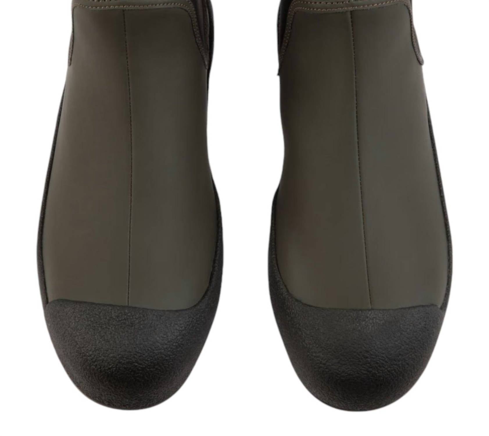 Say hello to the perfect, most versatile boot. The ankle height makes this style easily transition from day to night. Wear them with your favorite skinny jeans and tee for a more laid back look, or pair them with your favorite mini dress and jacket for a night out on the town. Introducing the Women's Gadey Calf Leather Ankle Boots by Bally, crafted for the modern woman in a deep moss hue. These stylish boots feature a convenient pull-on style and classic round toe with a refined capped design. Made from durable military green calfskin rubberized leather, lined with luxurious lamb fur, they offer both sophistication and exceptional comfort. Finished with a sturdy layered Vibram rubber sole, these boots ensure excellent traction, perfect for winter outings.