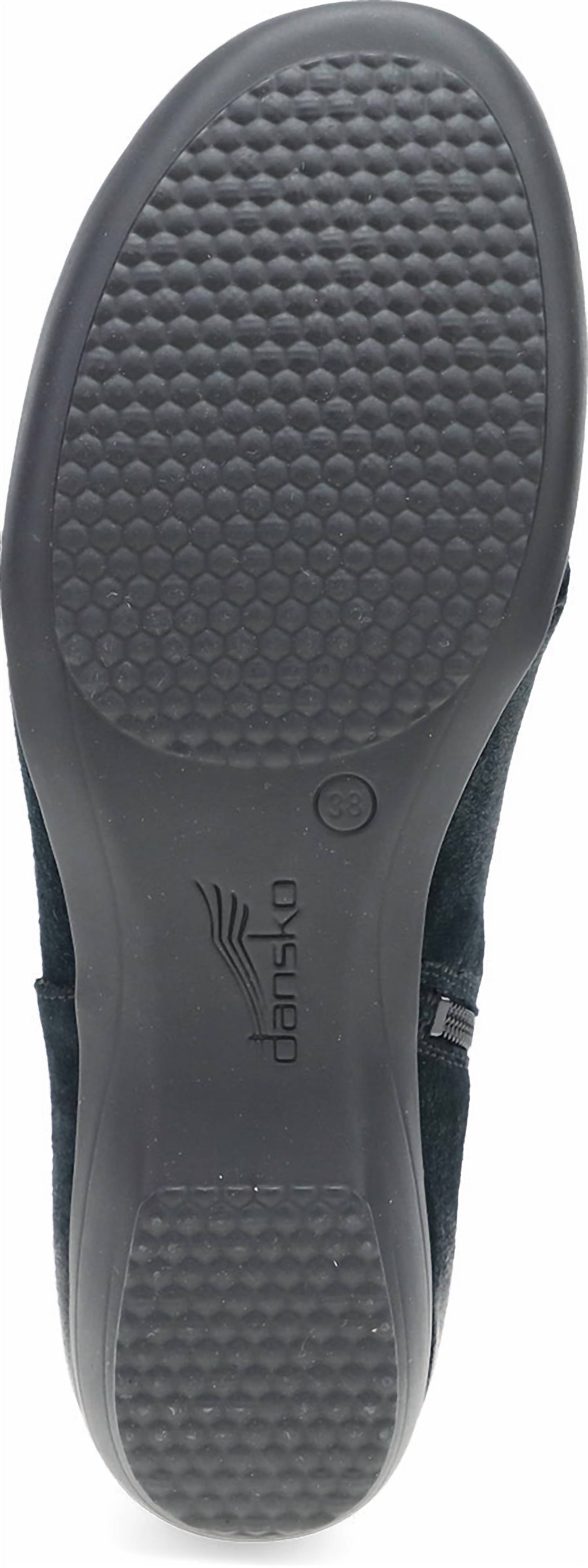 Lace-up bootie style. High-quality leather upper. Leather and anti-microbial treated textile lining. Breathable leather socklining. Removable EVA footbed. Dansko Natural Arch® technology. Tuckboard and steel shank for stability. Durable rubber outsole. Inside zipper closure. Heel height 1.5 in.