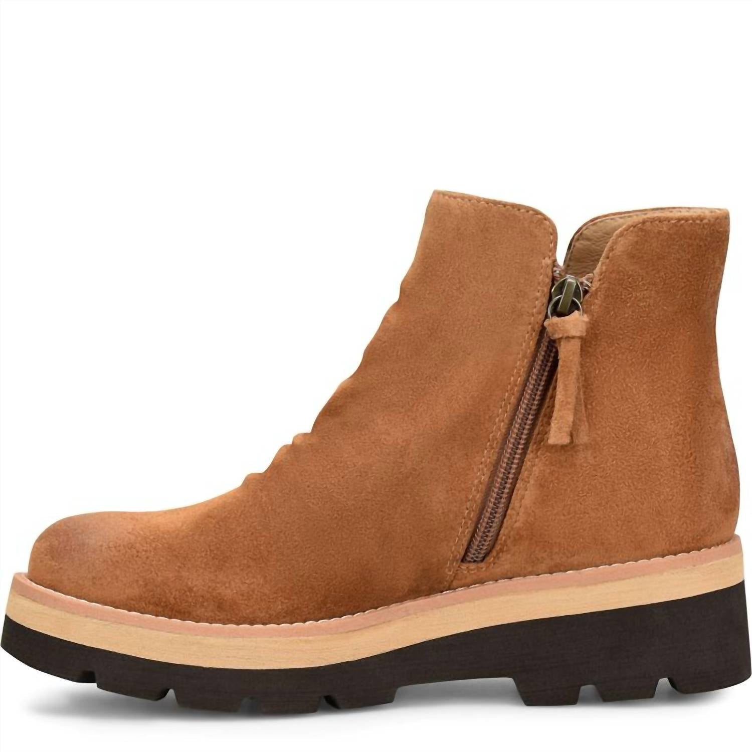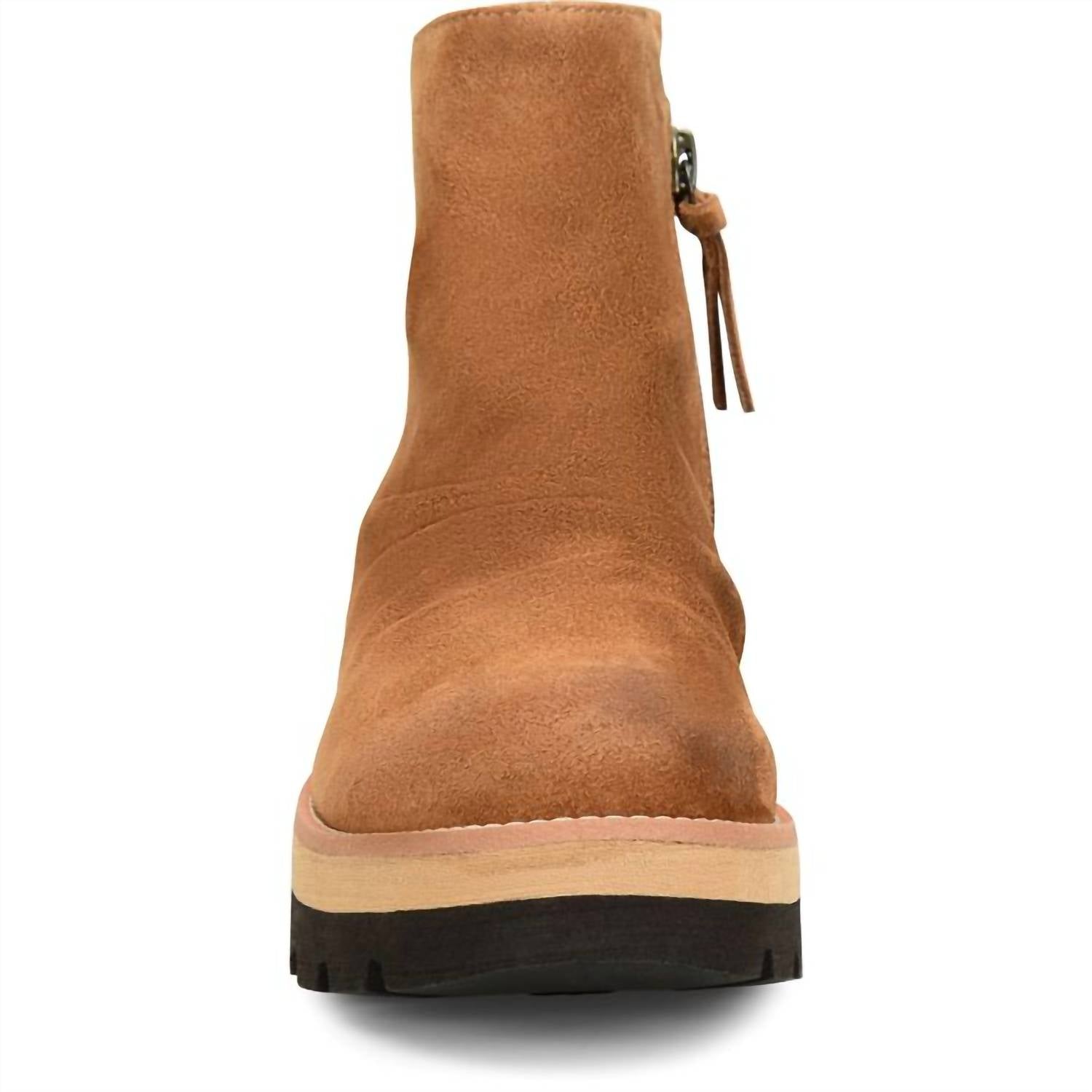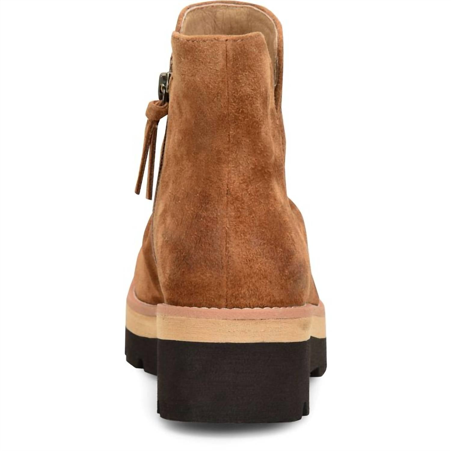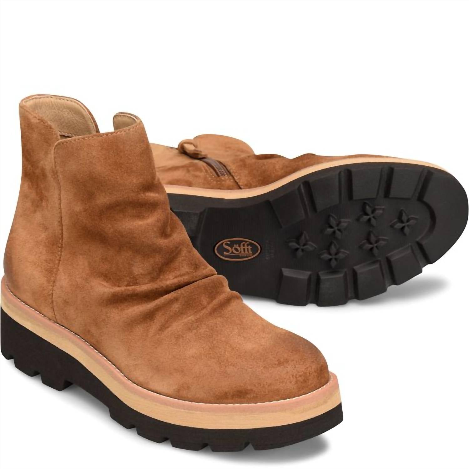 Say hello to the perfect, most versatile boot. The ankle height makes this style easily transition from day to night. Wear them with your favorite skinny jeans and tee for a more laid back look, or pair them with your favorite mini dress and jacket for a night out on the town. Explore the rugged elegance of the Women's Pecola Boots by Sofft, designed in a rich Brandy hue. Crafted from premium waterproof leather, these boots promise unsurpassed durability and stylish functionality. The 2-inch block heel adds subtle lift, while the arch-supported leather-lined footbed ensures comfort. Featuring a non-slip rubber-EVA lugged outsole and inside zipper for convenience, these boots are ideal for your adventurous spirit.