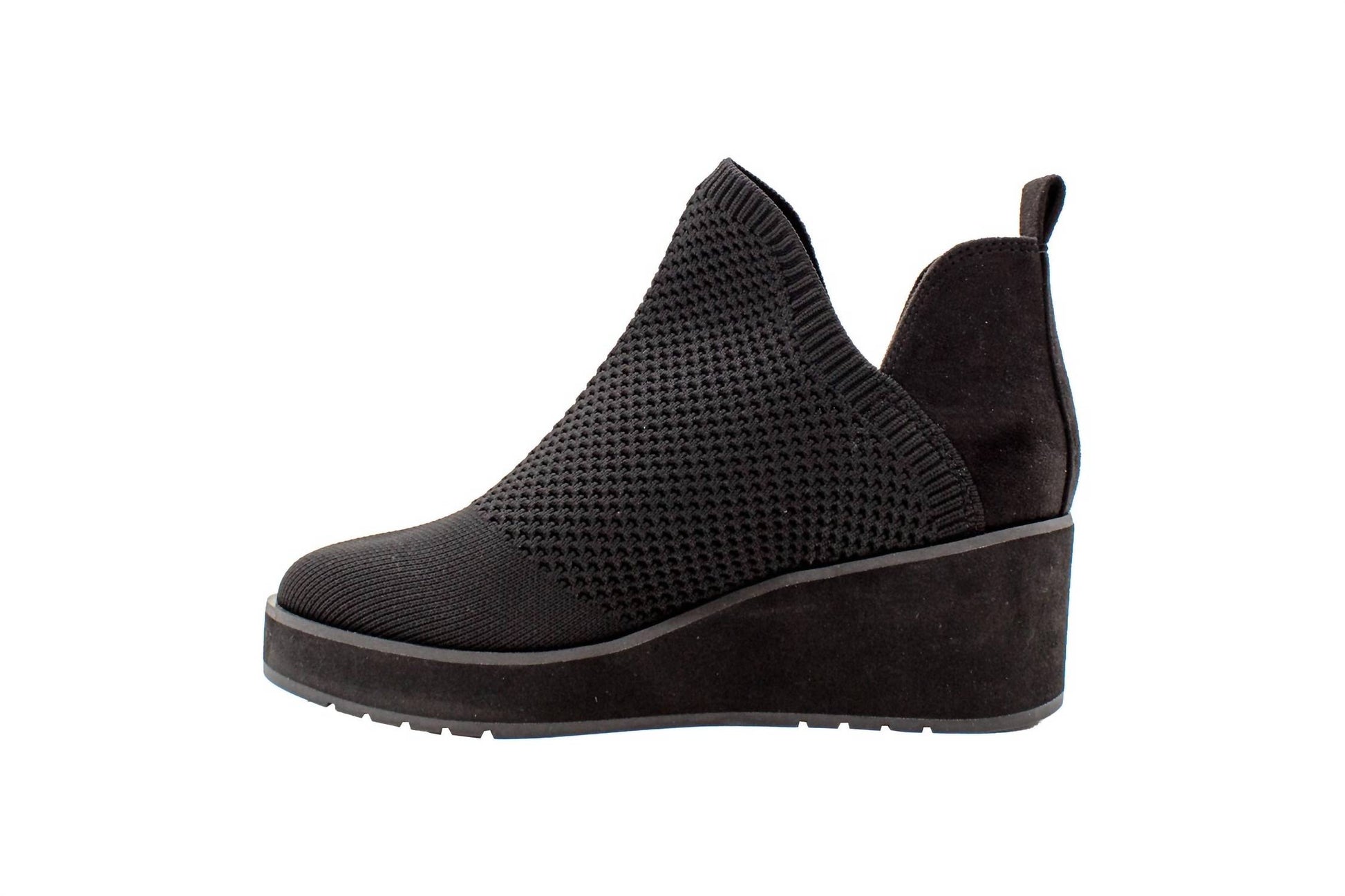 Rainy day? No problem! The cutest and most comfortable rainboots of the season. Step into style with the Albright Bootie by VOLATILE, featuring a 2.75” EVA wedge heel for a chic lift. This black ankle bootie offers a stretch knit upper and round toe design, providing a comfortable fit and sleek, monochrome look. Equipped with a step-in construction and padded insole, it ensures all-day wearability, complemented by a rubber lug outsole for superior traction. Perfect for any vacation occasion, this medium-width bootie is the ideal addition to your summer wardrobe.