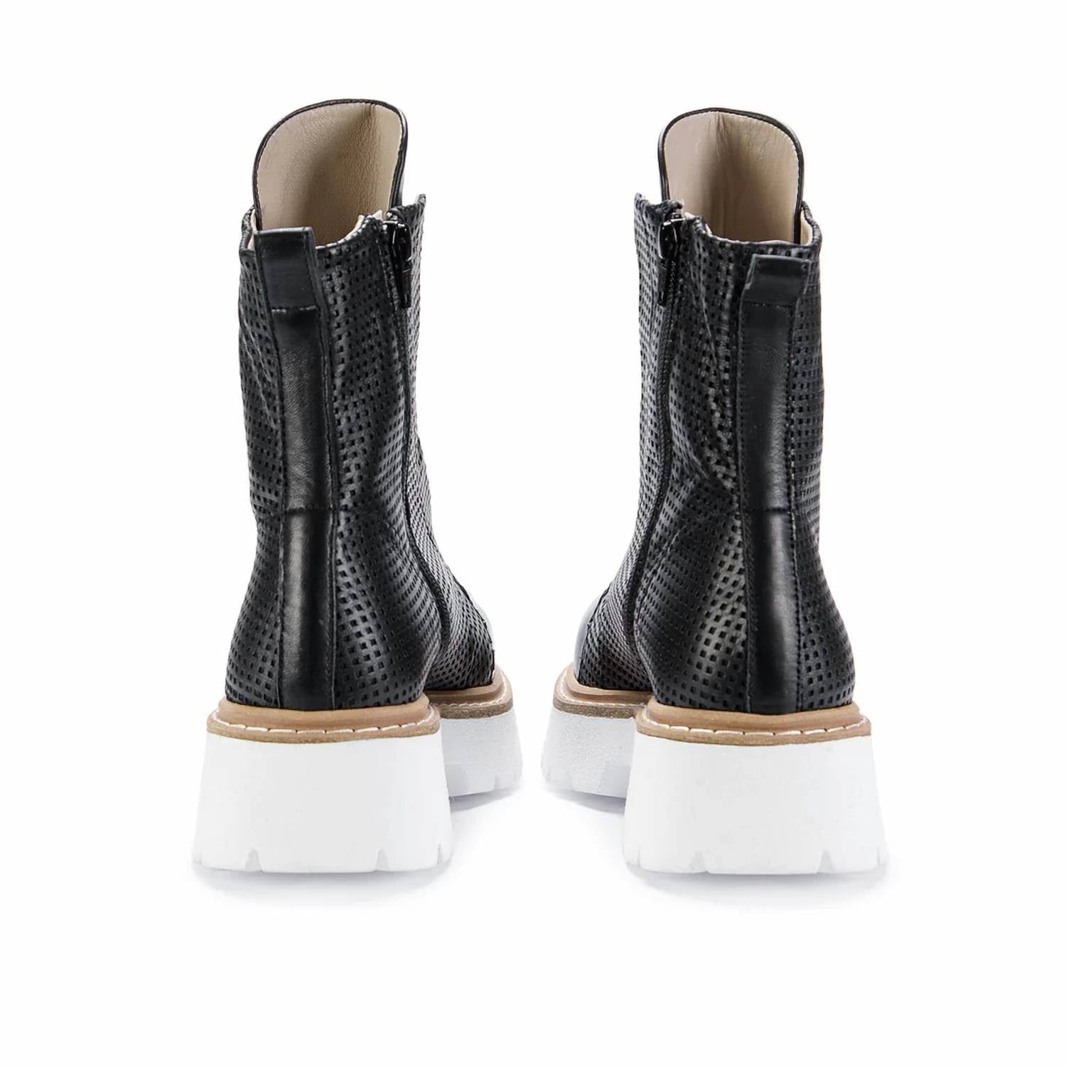 Leather/Rubber. Leather lining and insole. Perforated leather upper. Lateral zip closure. Made in Italy. Heel 5 cm.
