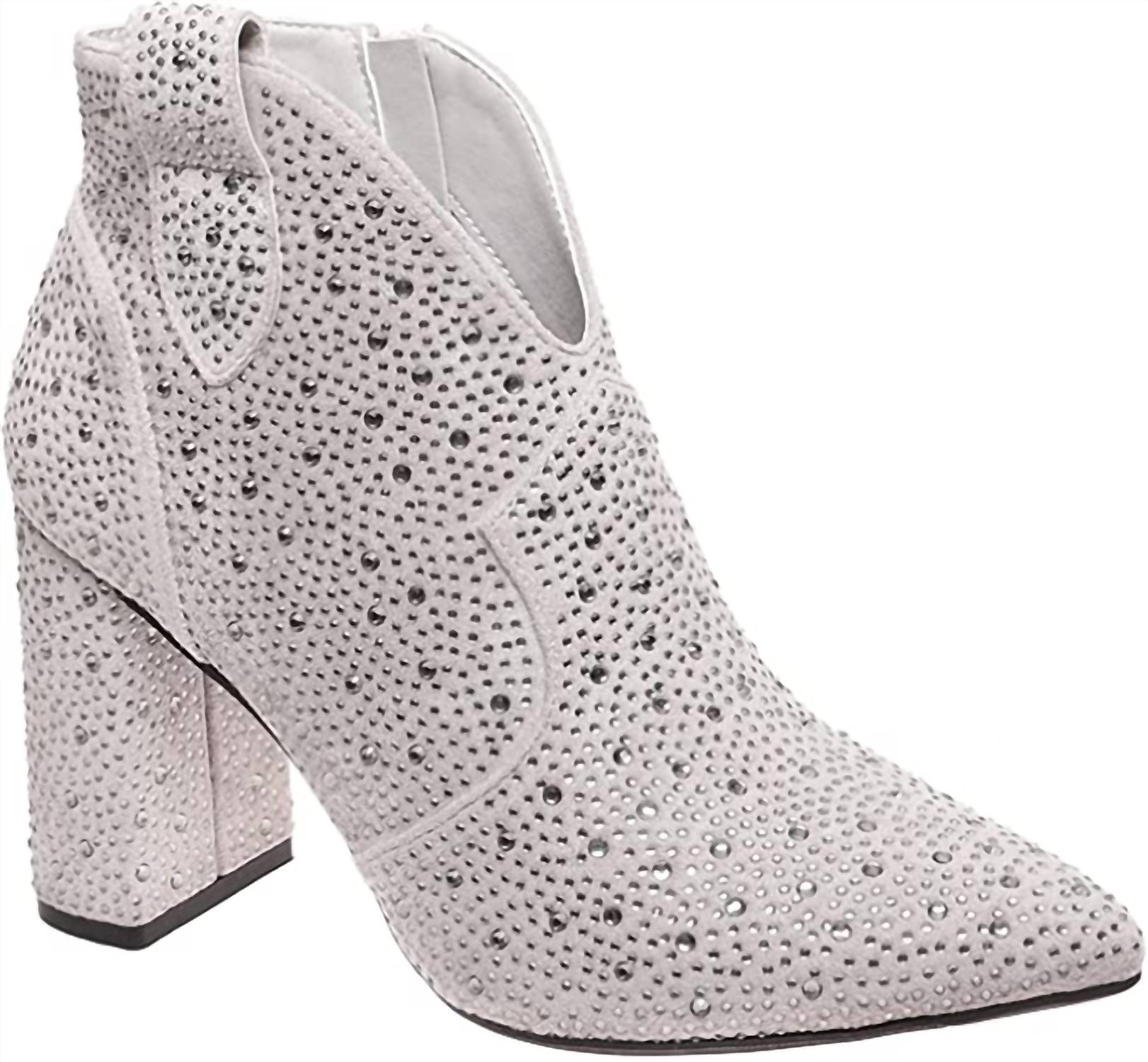 Say hello to the perfect, most versatile boot. The ankle height makes this style easily transition from day to night. Wear them with your favorite skinny jeans and tee for a more laid back look, or pair them with your favorite mini dress and jacket for a night out on the town. Step into the spotlight with the Women's Diva Rhinestone Boots by OLEM, designed for those who love to dazzle. These white ankle booties feature a solid-colored base adorned with full rhinestone detailing and a convenient side zip-up closure. They come with a 3.5-inch heel, ensuring you make an impression while offering comfort that runs true to size. Whether for a night out or a glamorous event, these booties will elevate your ensemble to diva status.