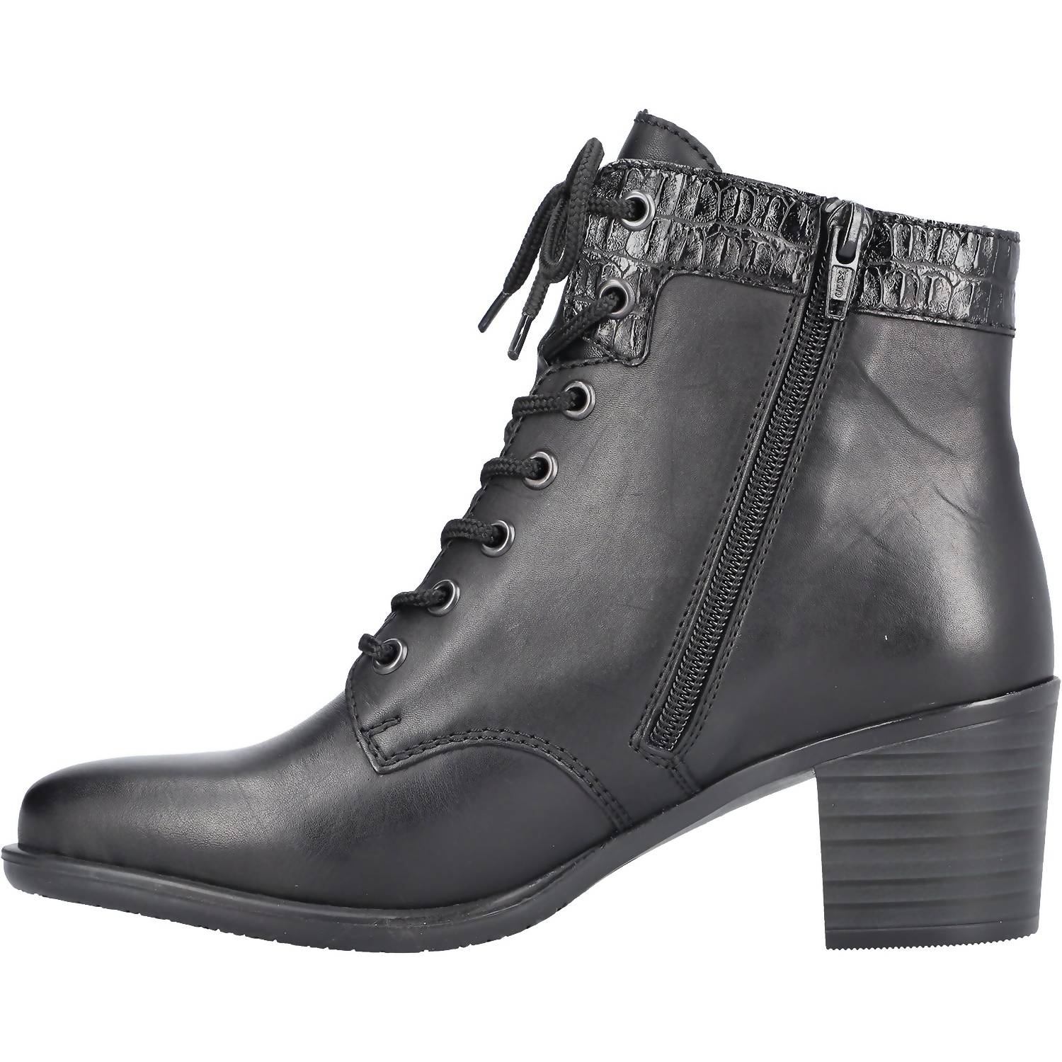 Say hello to the perfect, most versatile boot. The ankle height makes this style easily transition from day to night. Wear them with your favorite skinny jeans and tee for a more laid back look, or pair them with your favorite mini dress and jacket for a night out on the town. Introducing the Women's Ines 40 Faux Leather Ankle Boots by RIEKER, a stylish choice for evening events. These mid-height block heel boots in classic black feature a synthetic upper and textile lining, crafted for comfort and flexibility. Designed with an almond toe shape and easy side zip closure, they adapt effortlessly to your seasonal wardrobe. Embrace minimalist trends with RIEKER's anti-stress technology, offering lightness and superior cushioning for all-day wear.