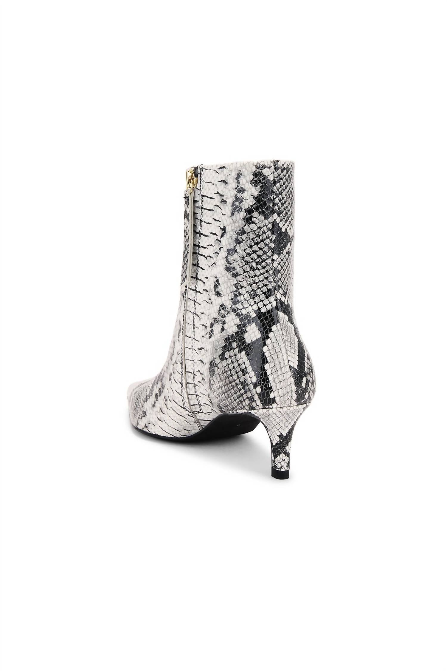 A stylish boot with a comfortable fit and the perfect amount of height. These classic boots are the perfect addition to any outfit and can be worn season after season. Introducing the Dinner Date Boot by Seychelles, a sophisticated addition to any wardrobe with its sleek lines and snug ankle fit. These heeled boots boast a chic kitten heel at approximately 50mm (2 inches) and a pointed toe, crafted from embossed faux leather in a striking Black/White Exotic colorway. The boots feature a convenient side zipper closure and an approximate 165mm (6.5-inch) shaft with a 10-inch circumference. These imported boots offer a medium width fit.