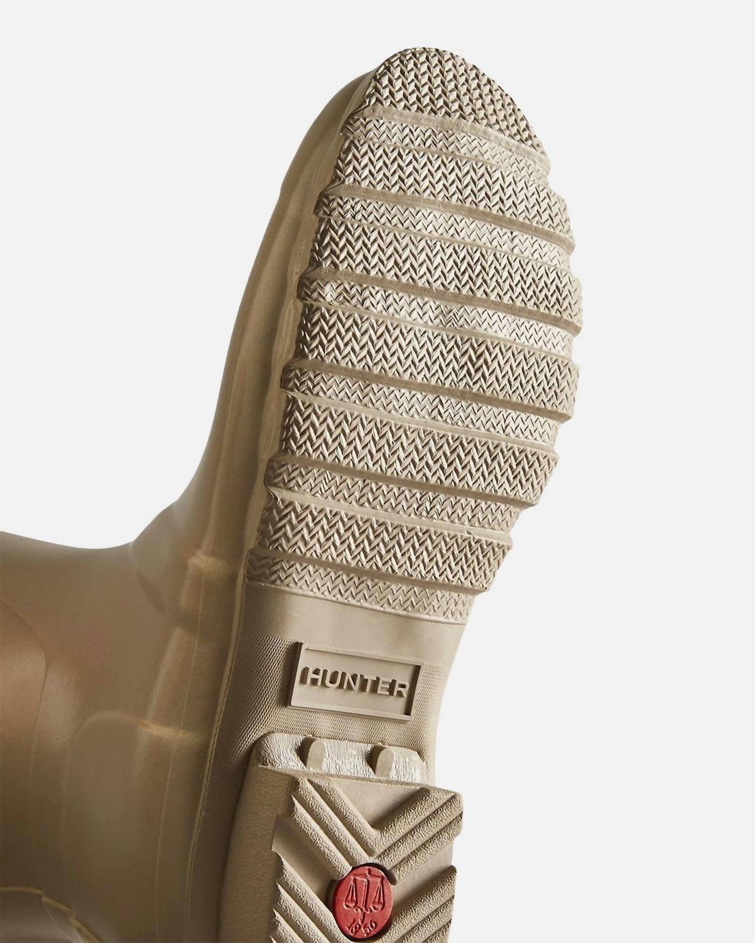 You'll be wishing for rainy days with these stylish yet functional rainboots. Step out in style with the Women's Original Short Nebula Rain Boot by HUNTER, now available in a stunning Pale Gold hue. These chic boots are crafted from durable rubber, ensuring you stay dry through any weather. Designed with a round toe and a block heel, they provide comfort and a touch of sophistication. With a low heel height of 1.38 inches, they are ideal for everyday wear during those rainy days.