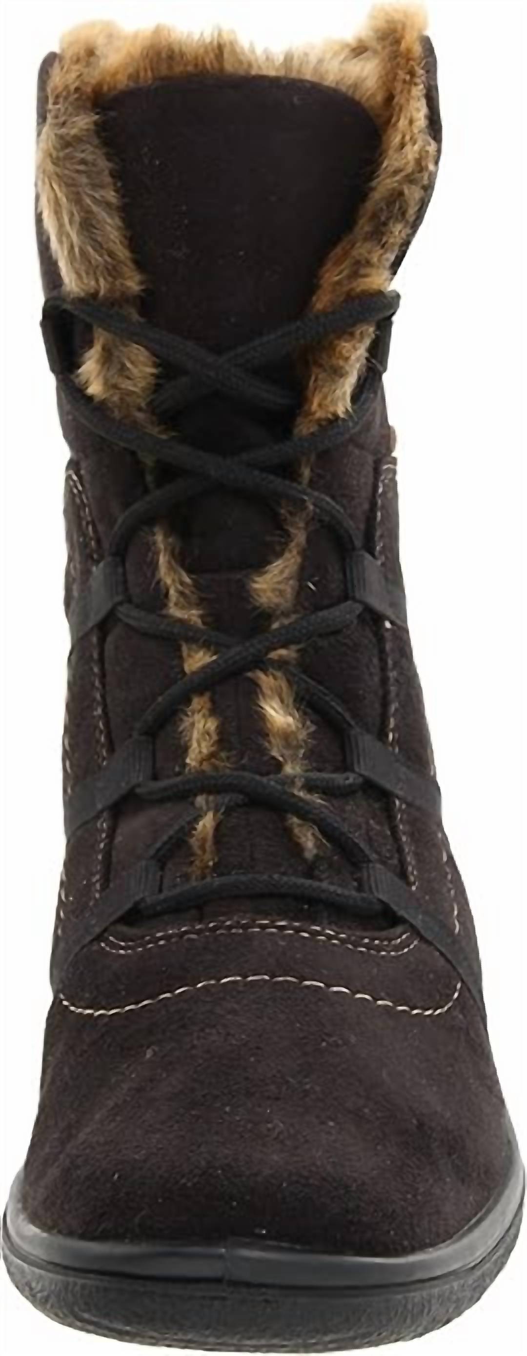 Say hello to the perfect, most versatile boot. The ankle height makes this style easily transition from day to night. Wear them with your favorite skinny jeans and tee for a more laid back look, or pair them with your favorite mini dress and jacket for a night out on the town. Stay dry and comfortable all winter with this stylish mid-boot designed for a roomy fit. Waterproof and breathable technology keeps feet protected from moisture while allowing airflow for lasting comfort. Crafted with quality materials and attention to detail, this boot combines fashion and function to support your feet through cold weather.