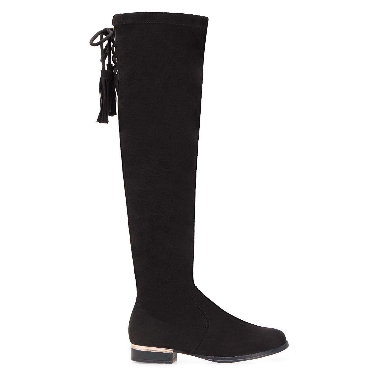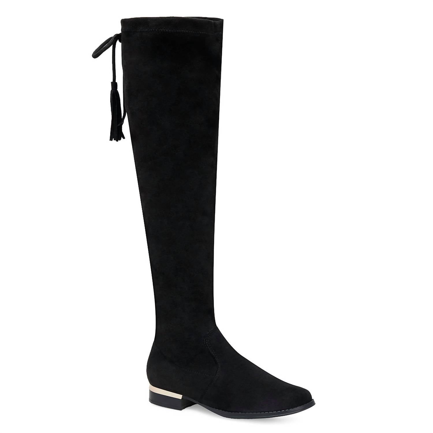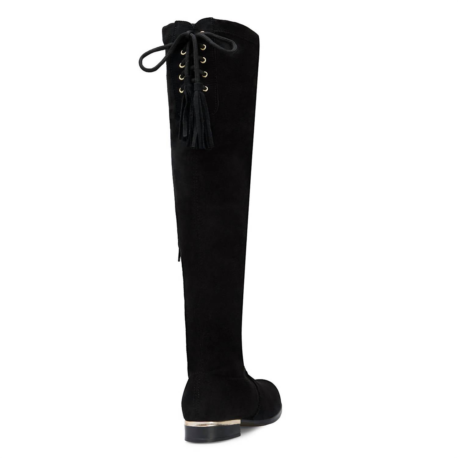 This Over The Knee Boot features a 1.25-inch block heel, stretch fabric for a sleek fit, and a side zipper for easy wear. Crafted from polyester with a padded insole, it blends style and comfort effortlessly.