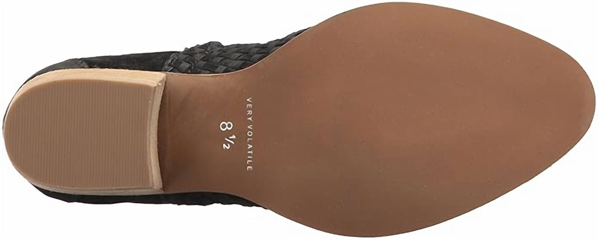 Say hello to the perfect, most versatile boot. The ankle height makes this style easily transition from day to night. Wear them with your favorite skinny jeans and tee for a more laid back look, or pair them with your favorite mini dress and jacket for a night out on the town. Introducing the VOLATILE Women's Veracruz Ankle Bootie, a chic choice for any wardrobe. Built with a 4-inch shaft height, this slip-on bootie showcases a handwoven leather upper paired with a stacked heel for a timeless silhouette. It features a padded insole and a sturdy rubber outsole with a stitched welt detail, all while maintaining shape with an internal metal underwire. Ideal for birthdays and Thanksgiving, this round-toe bootie is not water-resistant, offering a stylish yet considered choice for various occasions.