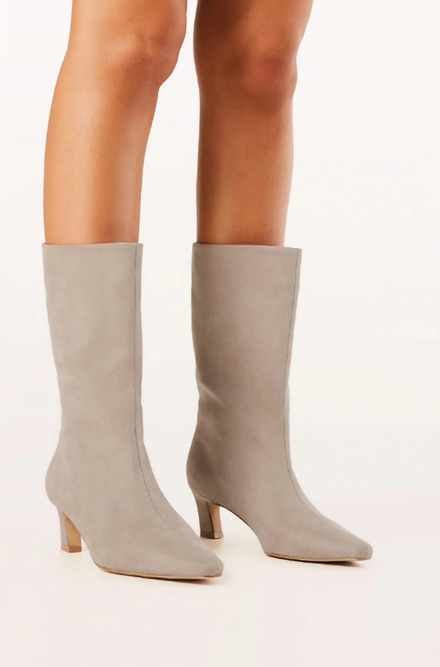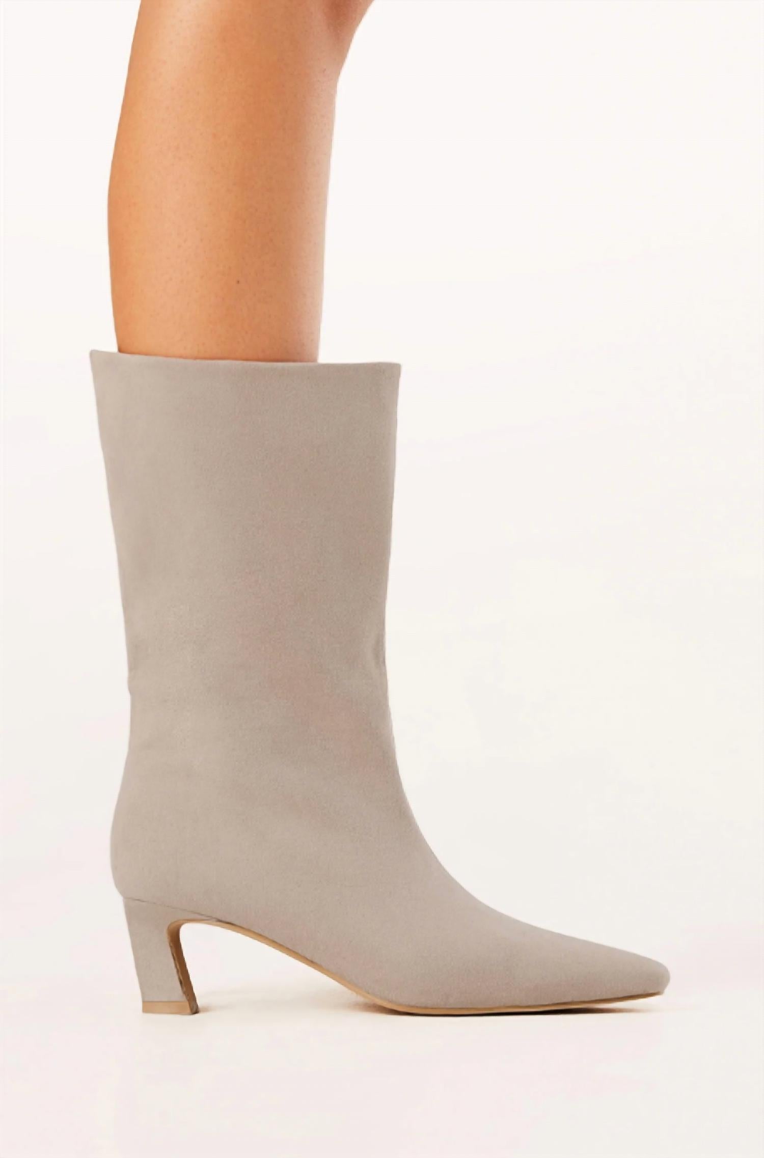 Upgrade your shoe game with these classic heeled boots, designed to merge sophistication and style. Comfortable enough for long days or a night out on the town. Elevate your style with the Women's Eliot Square Toe Boot by Billini, crafted in a chic Mist Suede. This mid-calf boot boasts a low, chunky stiletto heel with a height of approximately 2.15 inches, perfect for a fashionable yet comfortable stride. Designed with a wide calf upper, it ensures an easy pull-on experience and features a closed square toe for a modern look. Made from synthetic materials for the upper, lining, and outsole, this boot is a versatile addition to your heeled boots collection.