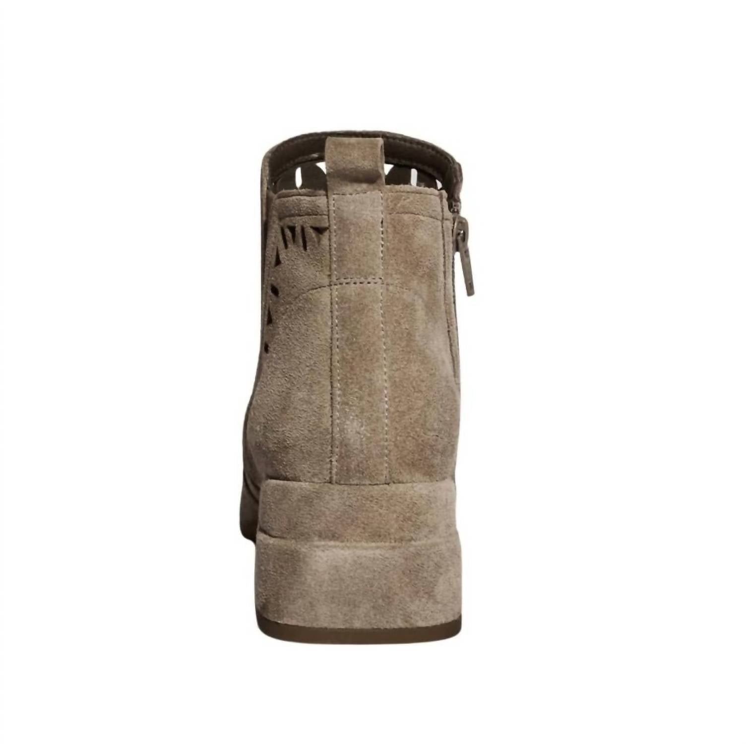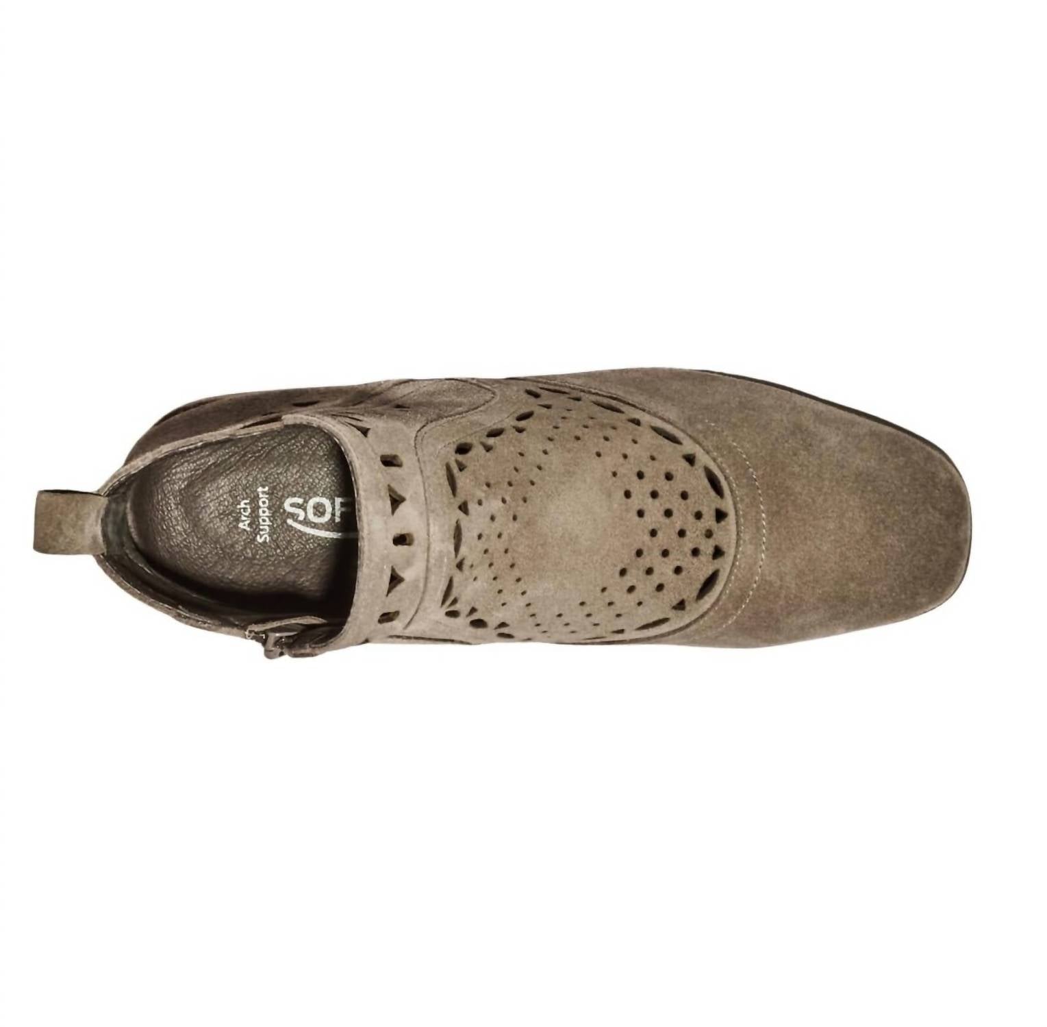 Say hello to the perfect, most versatile boot. The ankle height makes this style easily transition from day to night. Wear them with your favorite skinny jeans and tee for a more laid back look, or pair them with your favorite mini dress and jacket for a night out on the town. Introducing the Kandra Boots by Softwaves, a chic option for modern women. Crafted from taupe suede, these booties feature a stylish perforated design and a comfortable low block heel with a height of 2 inches. The round toe shape provides a classic look, while the side zipper ensures easy wearability. Perfectly designed for adult women, these ankle boots are an ideal blend of form and function.