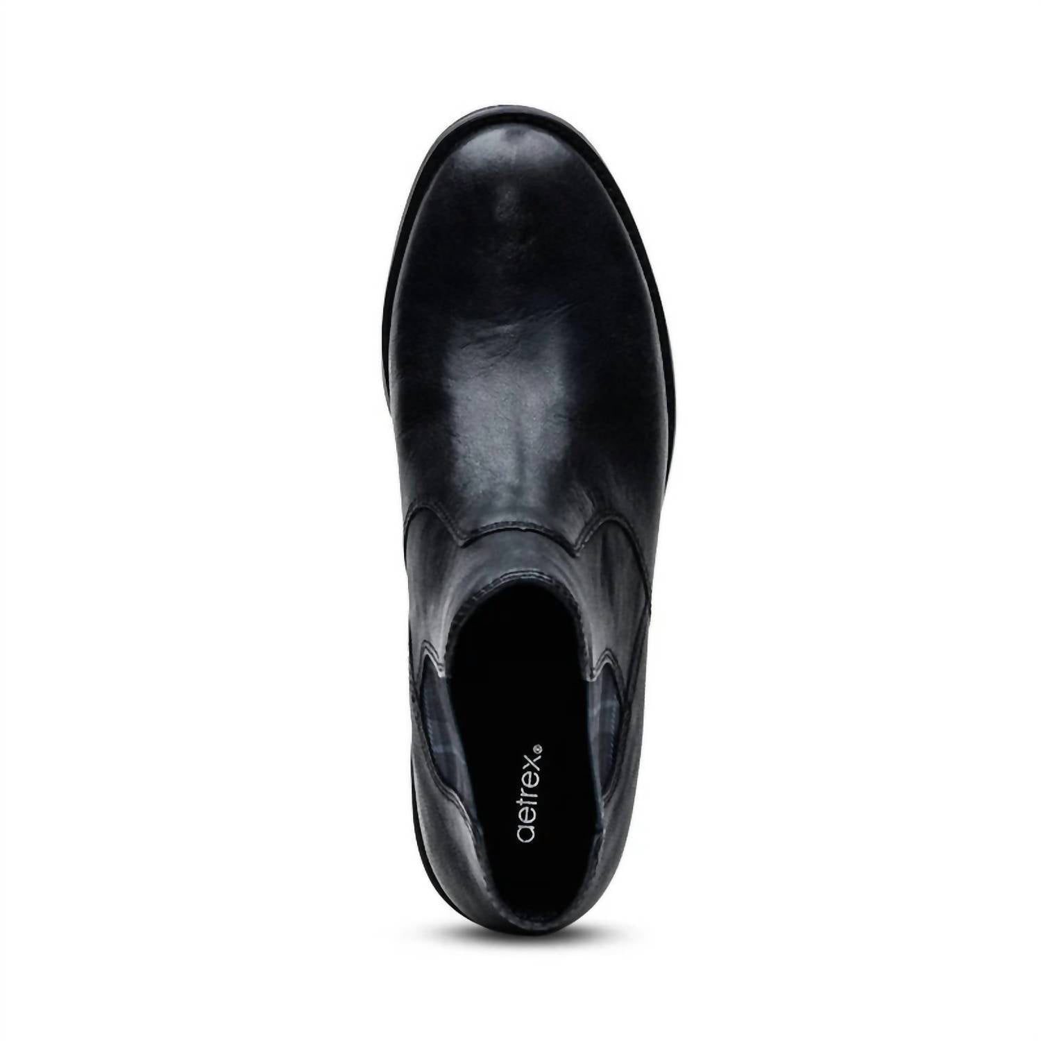 Say hello to the perfect, most versatile boot. The ankle height makes this style easily transition from day to night. Wear them with your favorite skinny jeans and tee for a more laid back look, or pair them with your favorite mini dress and jacket for a night out on the town. Elevate your style with the Aetrex Women's Kaylee Leather Boot, a perfect blend of fashion and function. This black, weatherproof Chelsea boot features a round toe design and a stretch twin gore for easy adjustability and comfort. Crafted from premium leather with a durable rubber outsole, it includes a removable insole lined with antimicrobial microfiber for freshness. Step with confidence on its 1.25" heel, knowing that the Aetrex Orthotic System provides arch support and UltraSkyâ„¢ cushioning for exceptional comfort.
