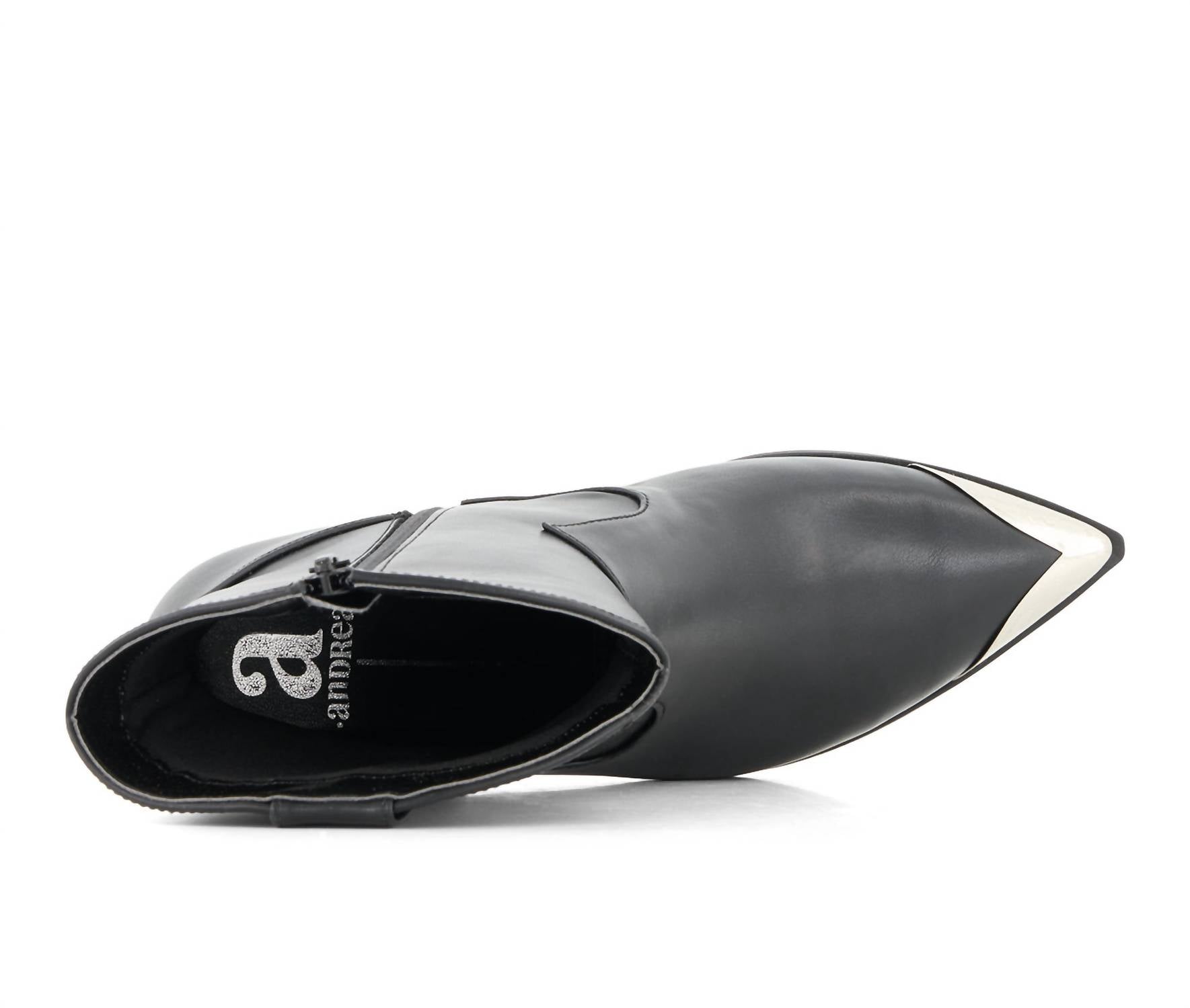 Upgrade your shoe game with these classic heeled boots, designed to merge sophistication and style. Comfortable enough for long days or a night out on the town. Introducing the Women's Pointed Toe Western Booties by Andrea, a chic addition to your fall wardrobe. Crafted with a luxurious rubber exterior and a cushioned foam insole, these black heeled boots ensure both style and comfort. The pointed toe and mid-height block heel at 2.25 inches add a sophisticated touch, perfect for a holiday party or a minimalist look. Ideal for the Thanksgiving season, these versatile boots promise a lightweight fit to elevate any outfit.
