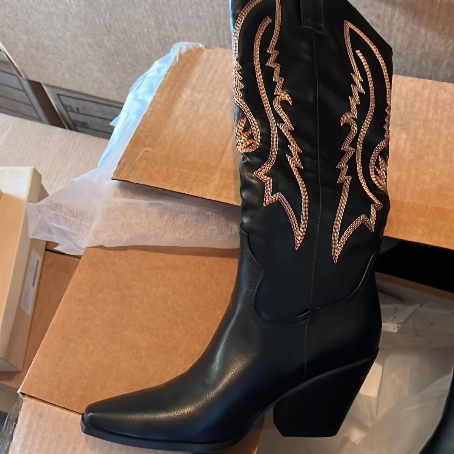 A stylish boot with a comfortable fit and the perfect amount of height. These classic boots are the perfect addition to any outfit and can be worn season after season. Elevate your footwear collection with Billini's Women's Calvin Riding Western Boots, a chic addition perfect for any holiday party. Featuring a stylish mid stacked block heel, these boots boast Western-inspired embroidery and a sophisticated pointed toe. Crafted entirely from synthetic materials, they offer side pull tabs for effortless wear. Embrace the trend with a heel height of 8cm, adding a bold touch to your spring wardrobe.