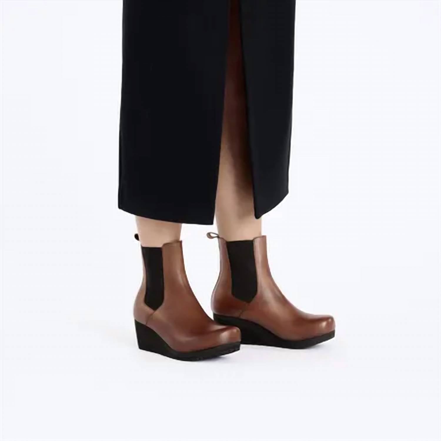 Say hello to the perfect, most versatile boot. The ankle height makes this style easily transition from day to night. Wear them with your favorite skinny jeans and tee for a more laid back look, or pair them with your favorite mini dress and jacket for a night out on the town. The Ebba ankle boot brings the contoured comforts of the BIRKENSTOCK® footbed together with a wedge heel. Designed to level up your style without adding pressure to the front of your foot. In premium natural leather, this one belongs in your closet. Supportive contoured footbed Natural leather upper Microfiber footbed lining Wedge heel; 40mm Lightweight PU sole Made in Portugal