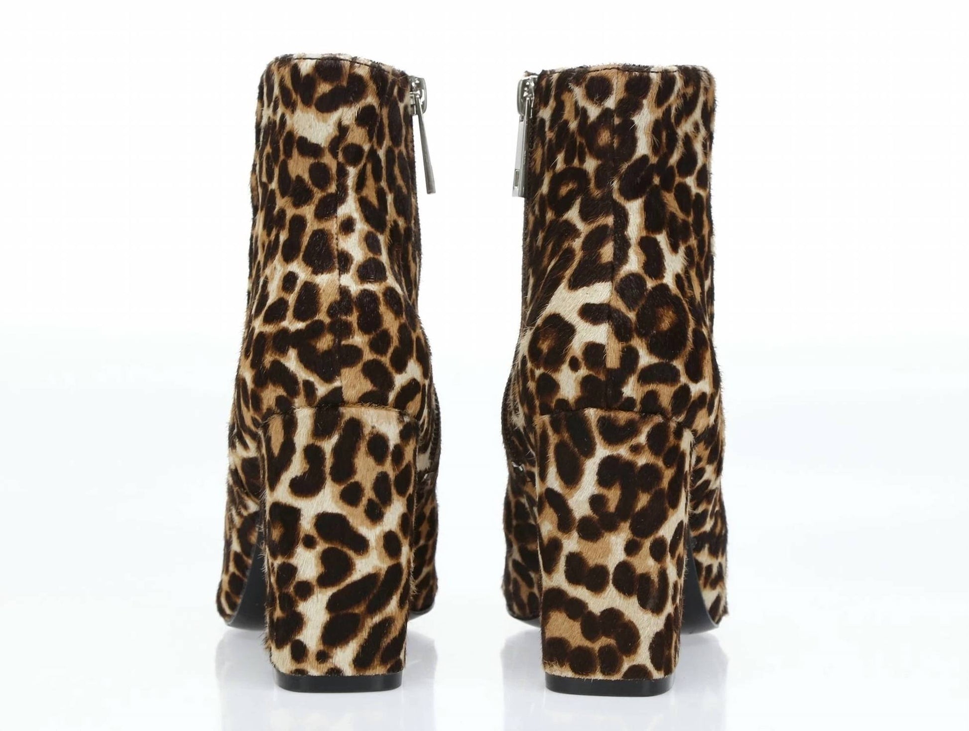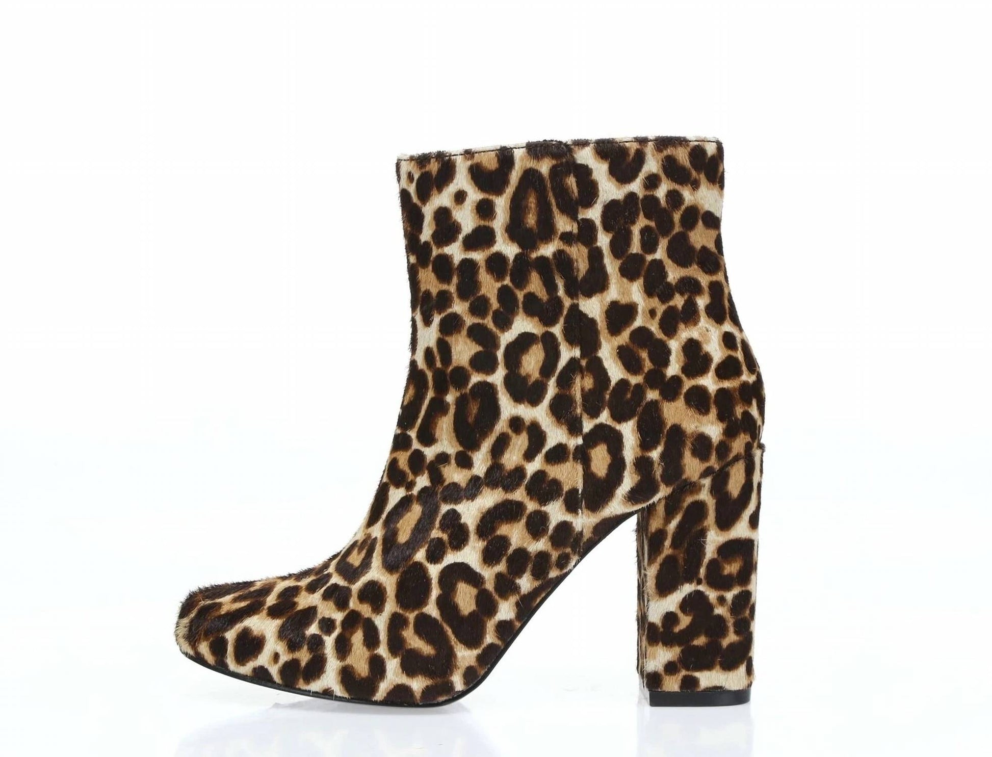 Say hello to the perfect, most versatile boot. The ankle height makes this style easily transition from day to night. Wear them with your favorite skinny jeans and tee for a more laid back look, or pair them with your favorite mini dress and jacket for a night out on the town. Painted calf hair leather upper in leopard print Round toe Side zip eases dress Padded footbed Smooth outsole Leather calf hair upper Synthetic lining and sole 3.8" block heel 4.25" shaft