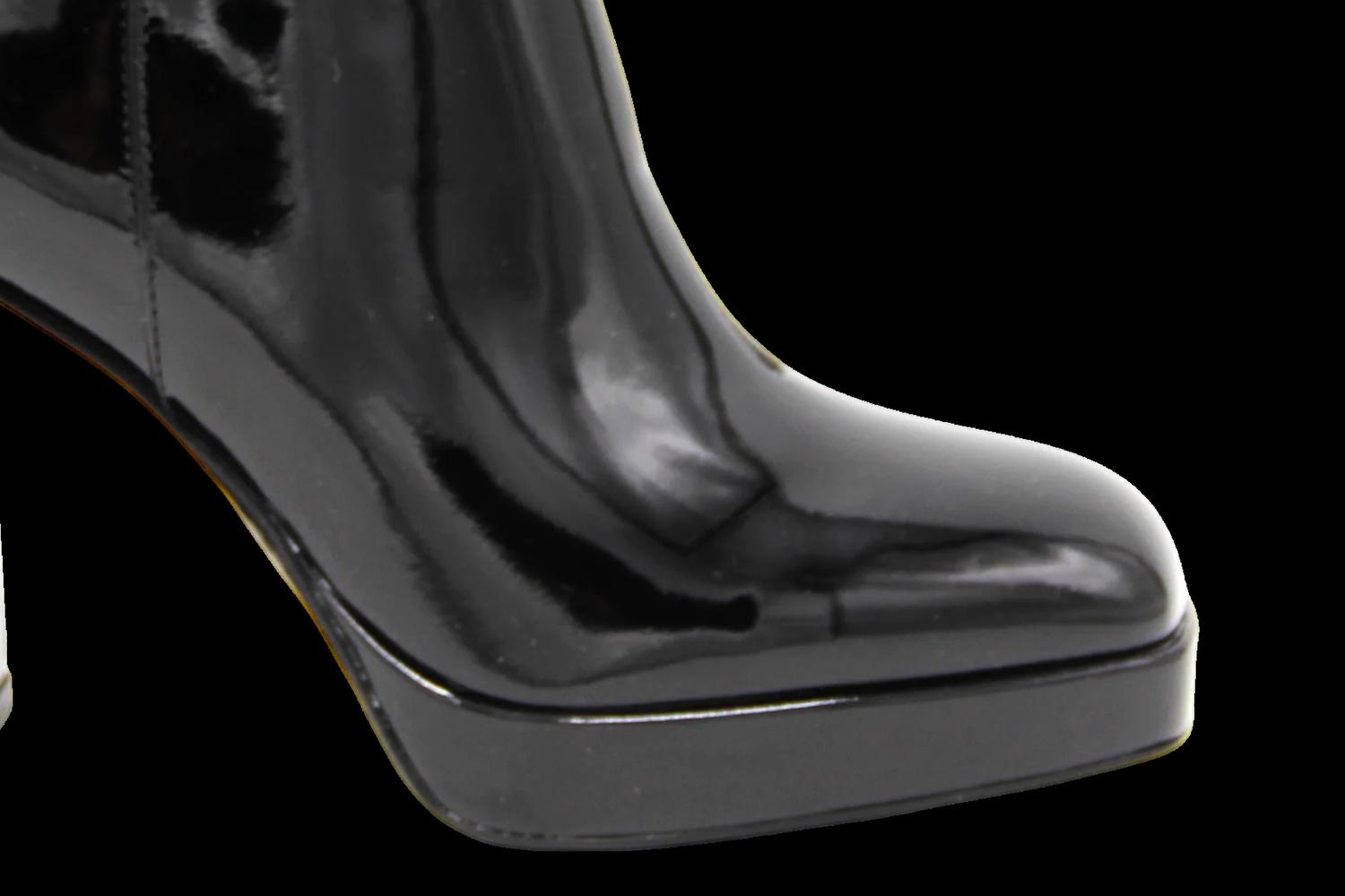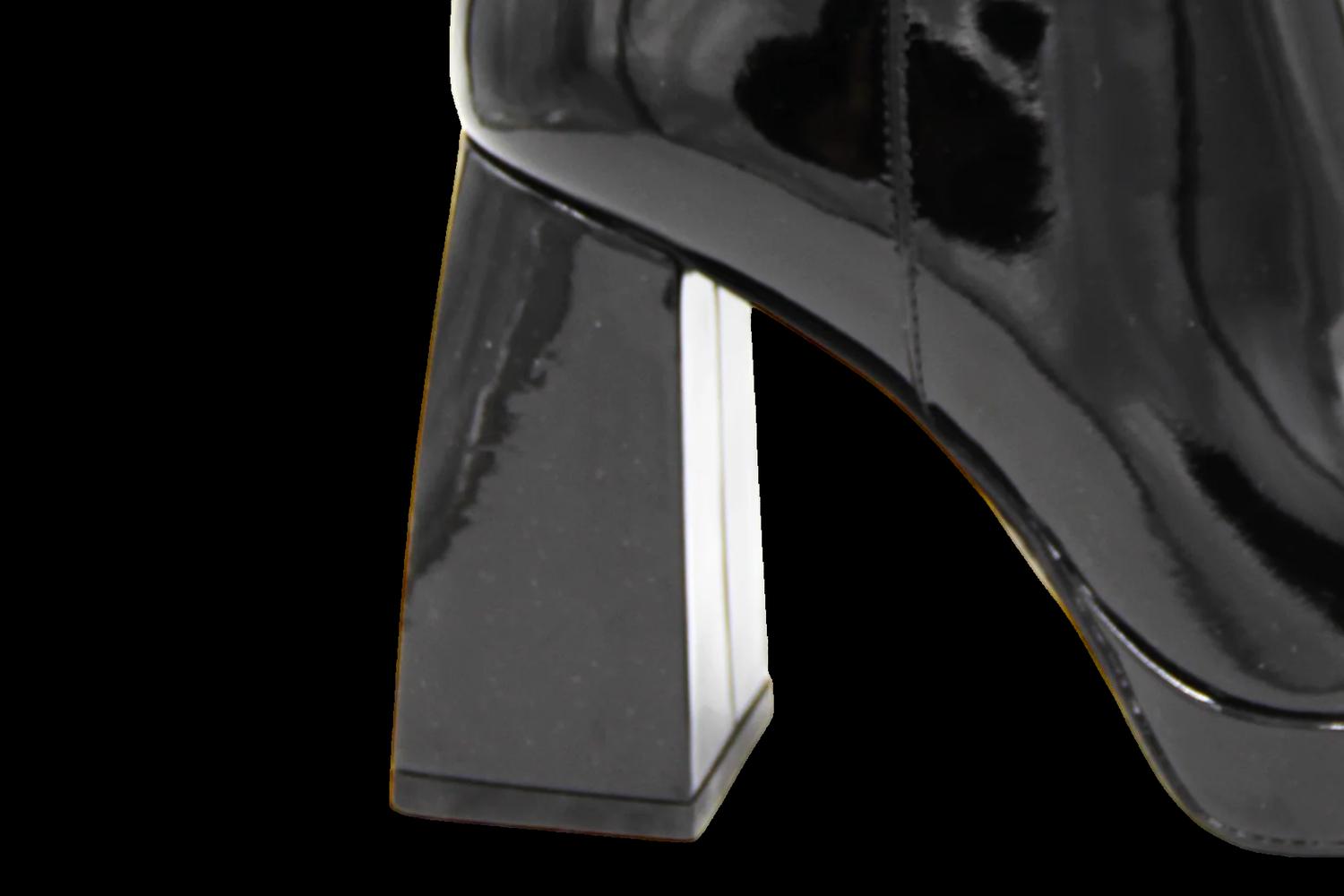 Say hello to the perfect, most versatile boot. The ankle height makes this style easily transition from day to night. Wear them with your favorite skinny jeans and tee for a more laid back look, or pair them with your favorite mini dress and jacket for a night out on the town. Elevate your party ensemble with the Exe Patent Leather Bootie, designed for the modern woman. Showcasing a sophisticated black patent finish, these ankle boots are crafted with synthetic materials and feature a chic round toe. Effortless to wear with a side zip closure, they boast a striking 14 cm heel and a balanced 5 cm platform for a high style statement. Perfect for fall and Thanksgiving festivities, the shaft height measures 18 cm, making it an ideal choice for holiday parties embracing the trend of Quiet Luxury.