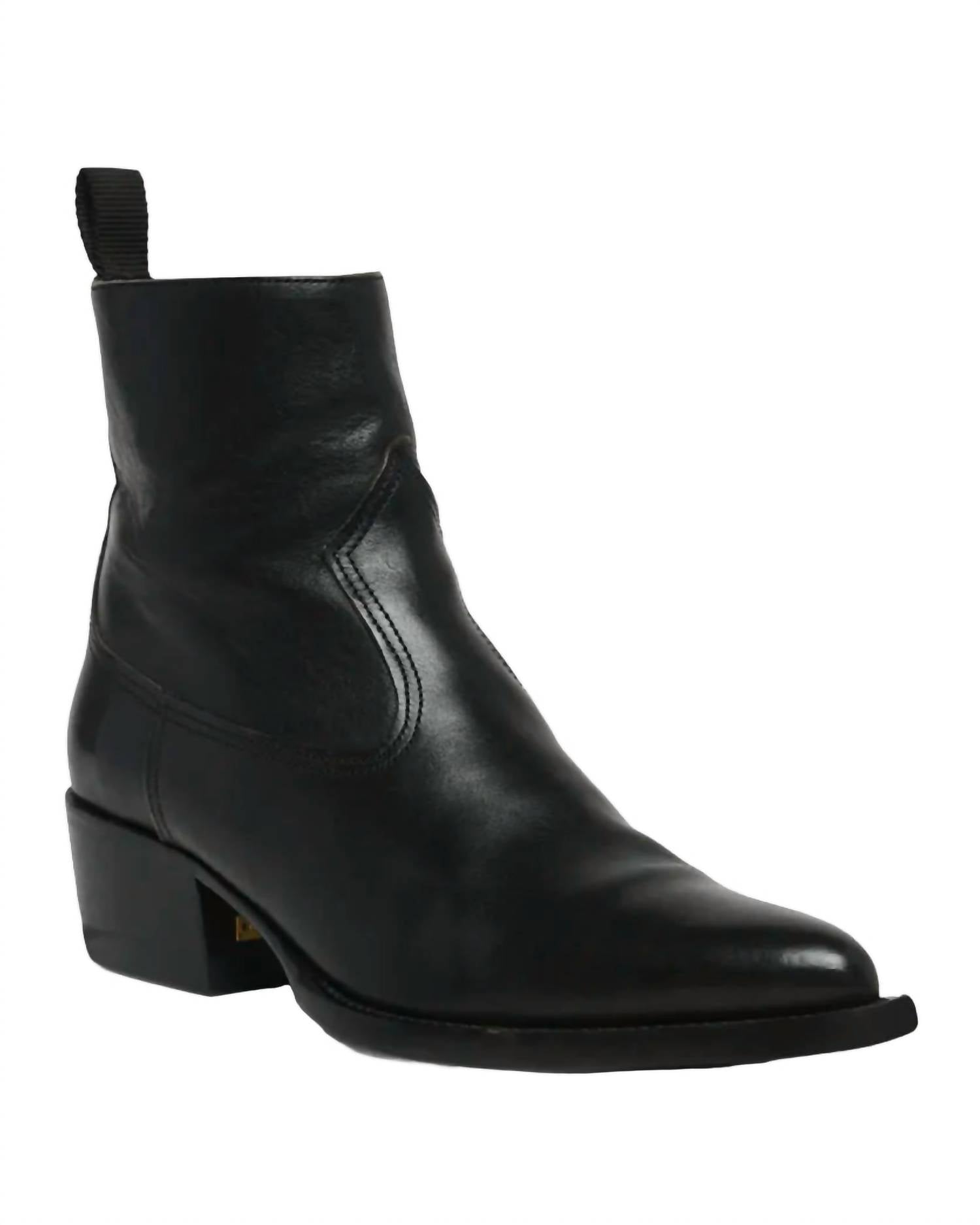 Say hello to the perfect, most versatile boot. The ankle height makes this style easily transition from day to night. Wear them with your favorite skinny jeans and tee for a more laid back look, or pair them with your favorite mini dress and jacket for a night out on the town. Step into style with the Women's Debbie Leather Ankle Boot by GOLDEN GOOSE, an elegant addition to your footwear collection. This sleek black ankle boot features a sophisticated pointed toe and a stable block heel measuring low at 1 1/4"-2", ideal for concerts or embracing the Y2K trend. Crafted entirely from cow leather, it boasts tone on tone stitching and eye-catching metal studs adorning the back. The side zipper ensures a convenient fit, making it perfect for the spring season.